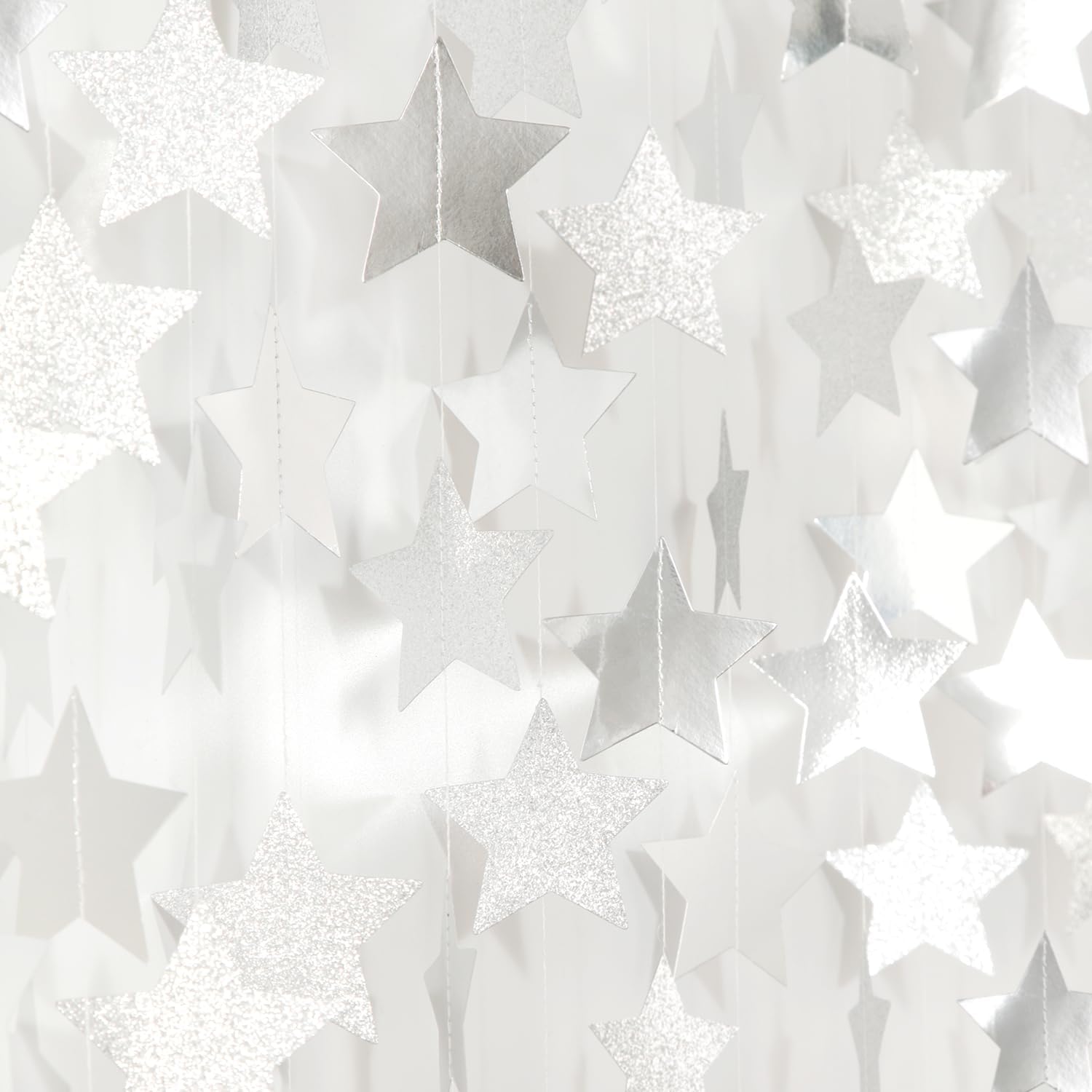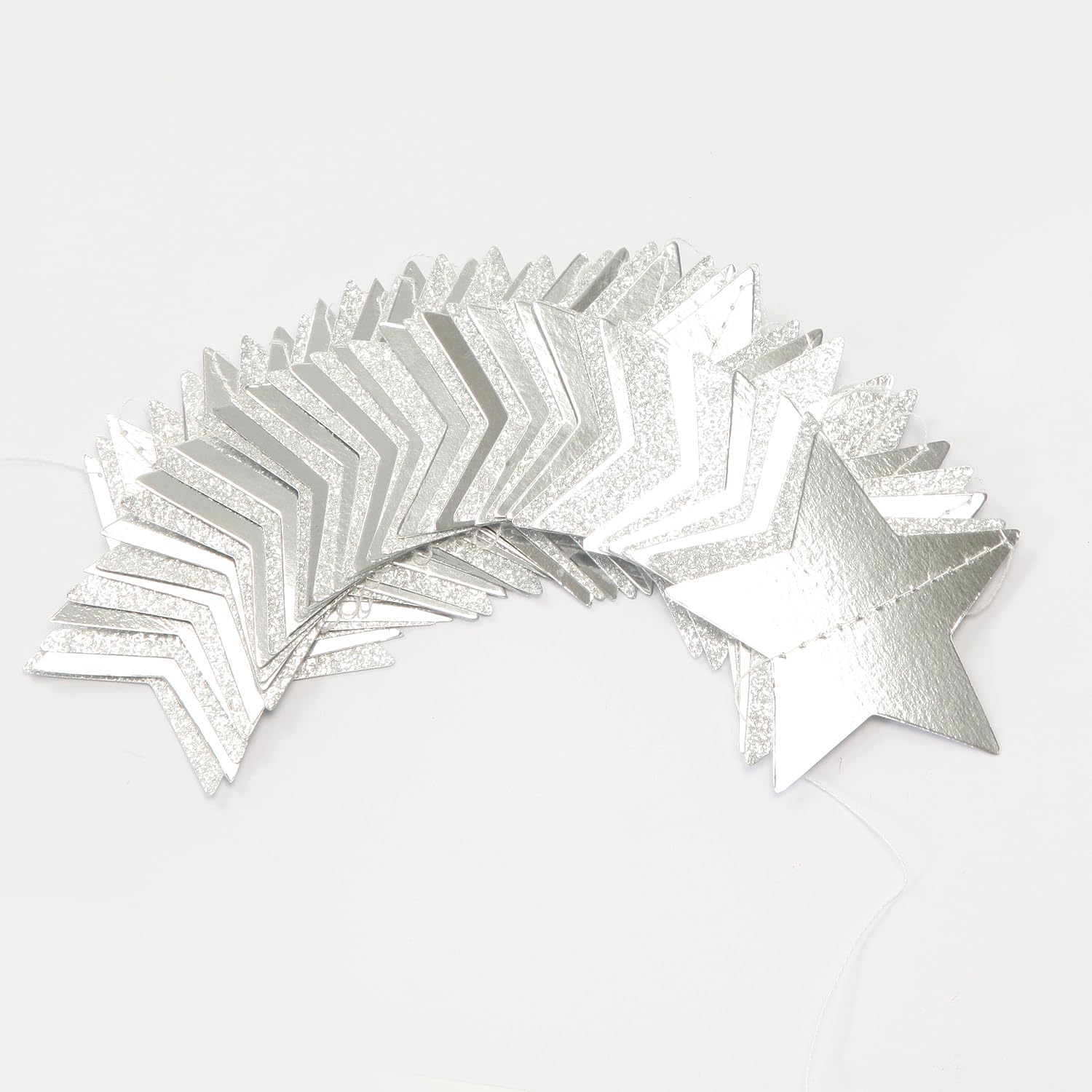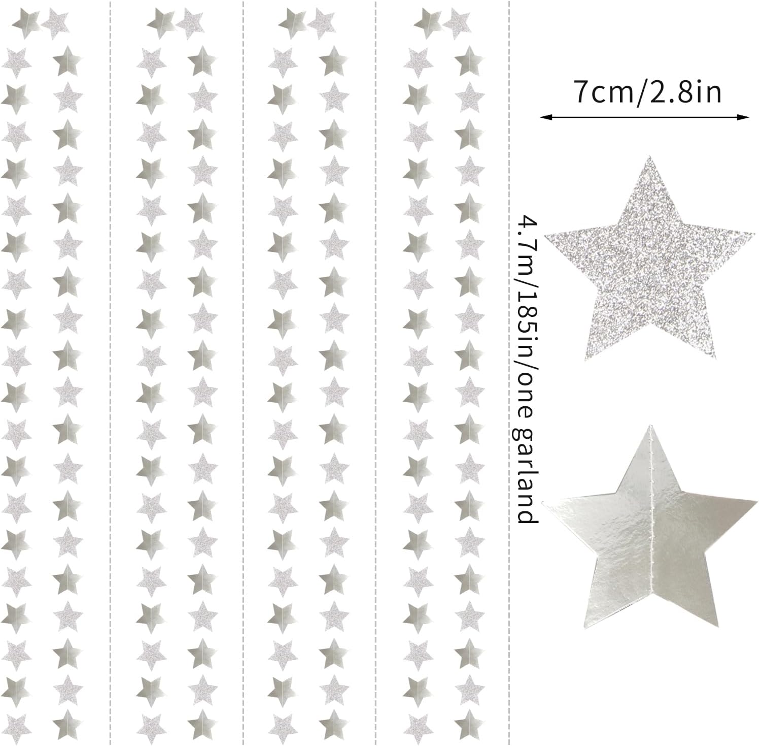 - PACKAGE CONTAINS: This set has 4 silver paper star garland, the length of each strand is 4.7 meters/11.5 feet, the total length is 18.8 meters/62 feet.
