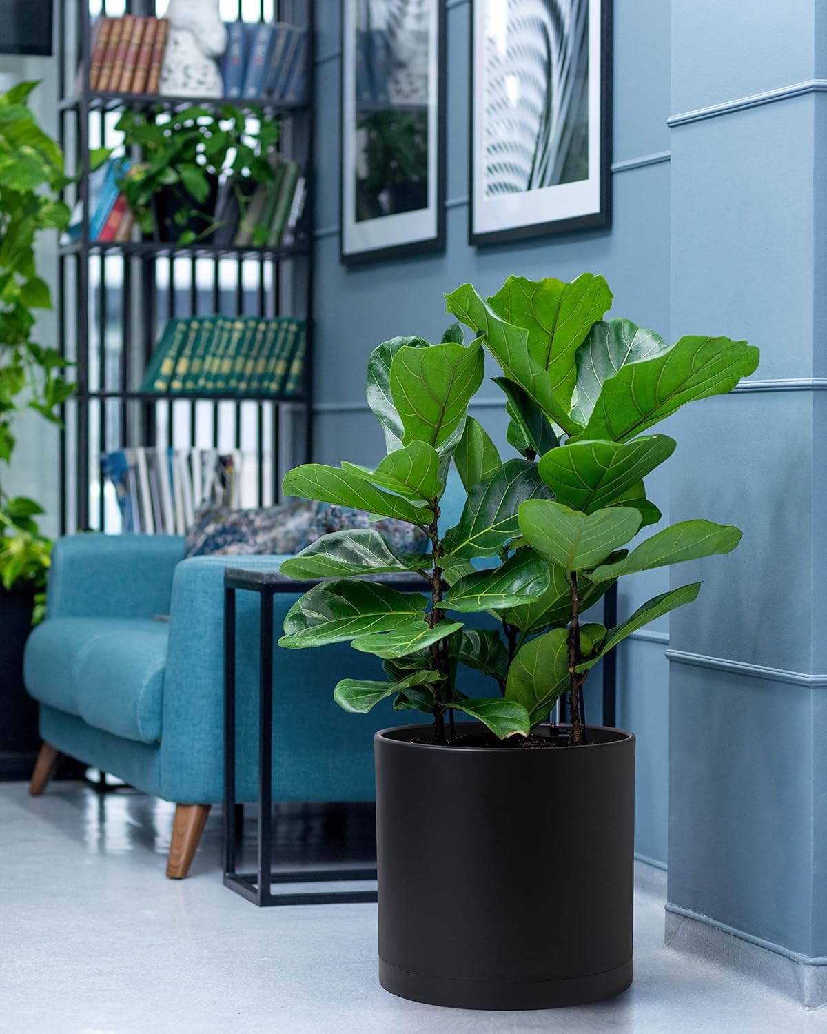 D'vine Dev 2 Pack 12 Inch Modern Plastic Plant Pots, Cylindrical Garden Planters for Plants with Drainage Holes and Saucers, Black, 74-Y-P-1