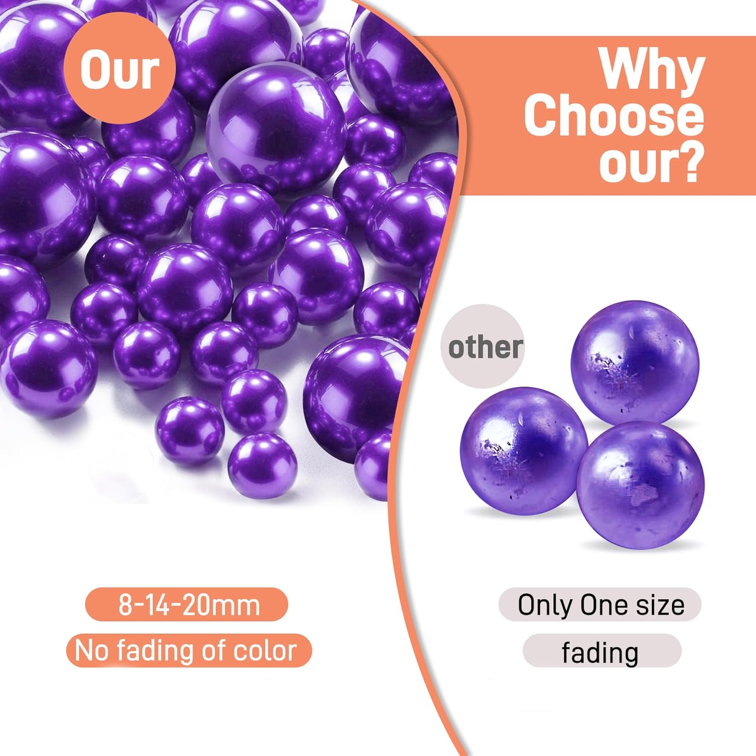 180PCS Purple Beads for Centerpieces Vases, No Hole Polished Pearl Makeup Beads Mixed 8/14/20mm Sizes, Pearl Vase Fillers Table Scatters for Party Wedding Decor