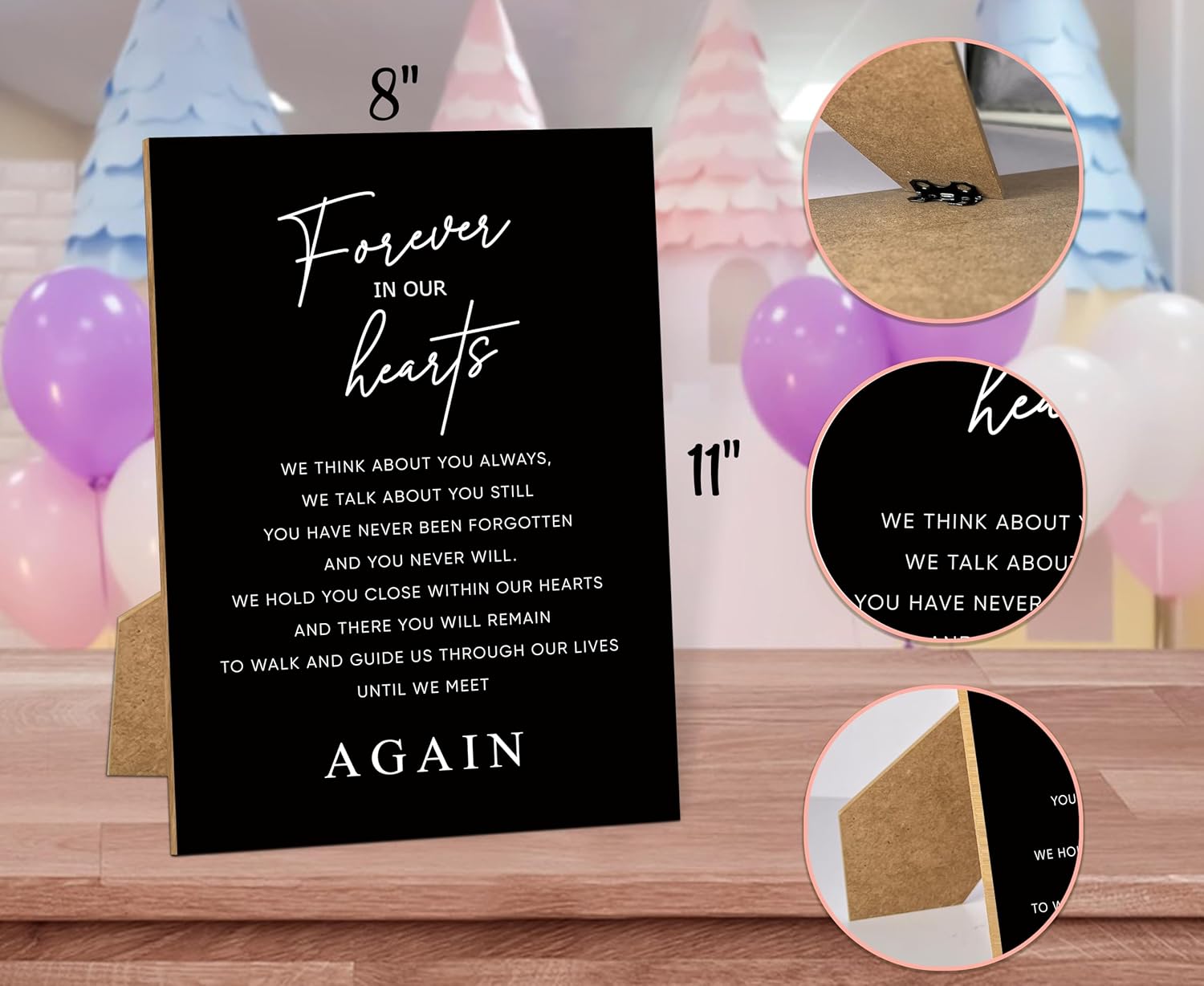 - Include: You will get a wedding memorial wooden sign with stand, the wooden sign measures 11X8 inches, single-sided printed on high quality wooden sign, with vibrant colors.