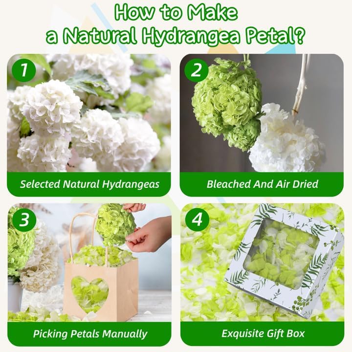 - Warm Reminder: Natural flower petals may have slight variations, highlighting their natural origin and enhancing their authentic charm. Avoid prolonged exposure to direct sunlight. We hope that our beautiful hydrangea petals will add a touch of romance to your special moments and make your photos even more perfect