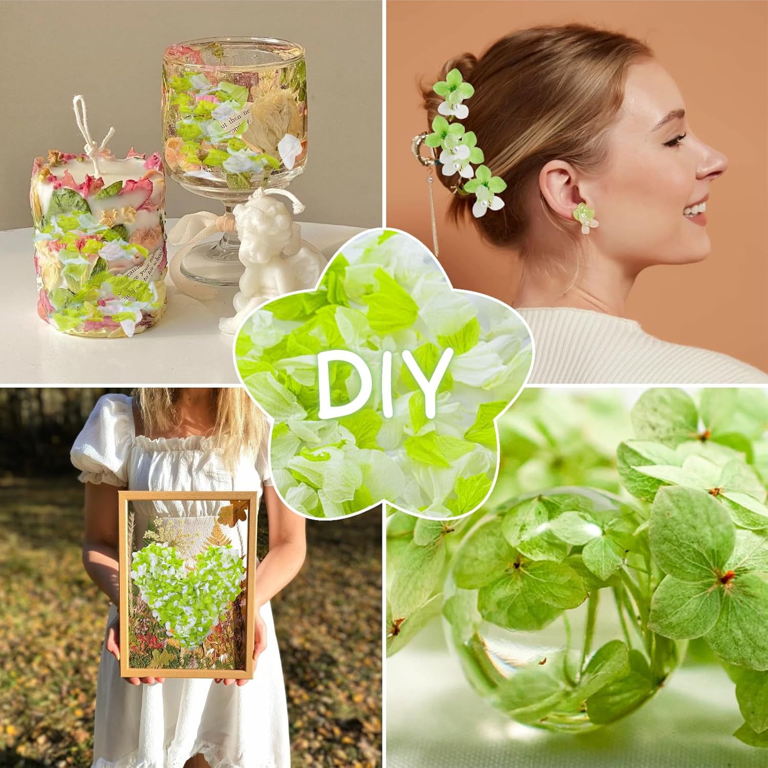 Real Dried Hydrangea Flower Petals -1.06Oz Real Natural Preserved Petals for Wedding, Party Confetti, Romantic Night, Proposal Decor, Handcrafts (Lime Green & White)