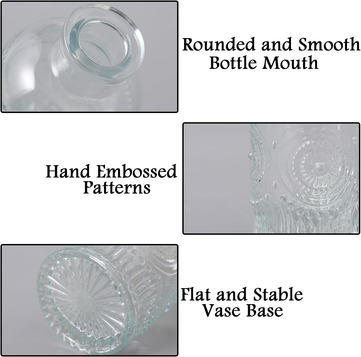 - Premium Quality: These glass flower vases are made of 100% premium Soda Lime glass, which is sturdy, leak-proof, easy to clean, and not easily broken. These vase sets have been drop-tested and are more sturdy than other glass vases. The handmade embossed pattern makes these vintage bud vases delicate and vivid