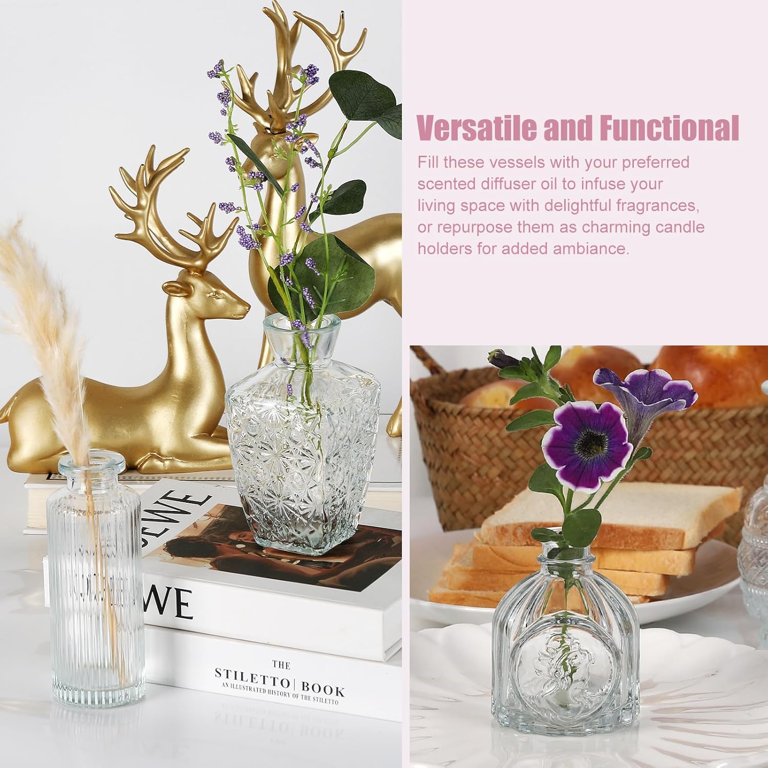 - 【Timeless Elegance】Introducing our exquisite Glass Bud Vase Set of 12 Pcs, designed to add a touch of vintage elegance to any space. Crafted with meticulous attention to detail, each small glass vase features delicate etched patterns that elevate its charm and appeal. Whether adorning your window sill, dining table, or wedding reception, these vases promise to captivate with their timeless beauty.