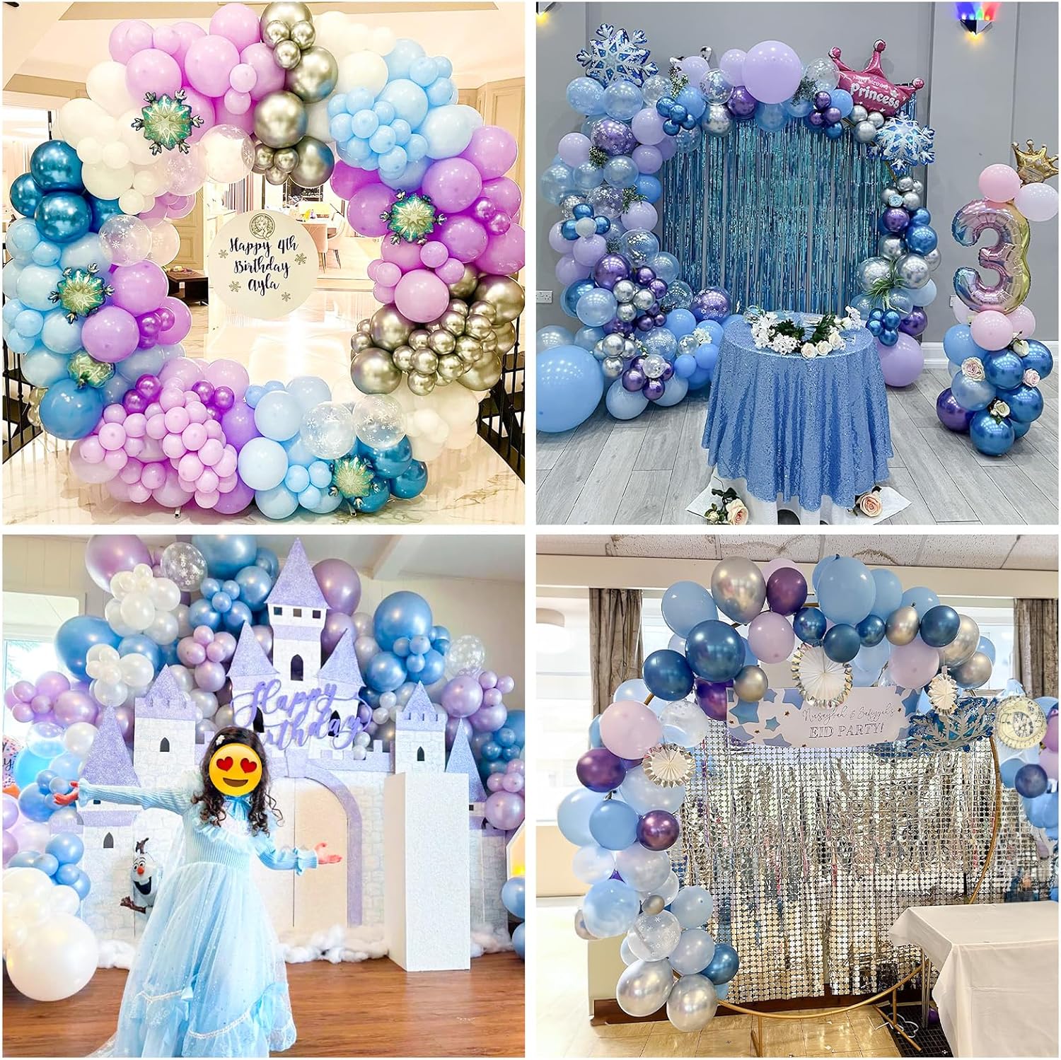 • Usage Scenarios: Perfect for winter wonderland decoration, princess party decorations, baby shower, anniversary, wedding, birthday decor, Christmas decorations, New Year, weddings, anniversary and more. You can also DIY the 12inch purple metallic balloons and store the purple blue balloon arch at home or office to add a romantic atmosphere to your outdoor or indoor parties, makes your winter themed party decorations attractive