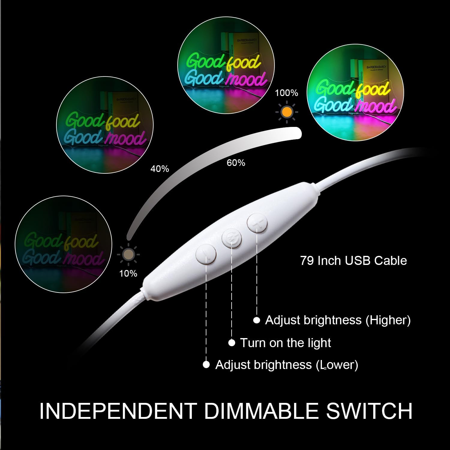 Looklight Good Food Good Mood Neon Sign,Letter Neon Signs for Wall Decor,Colorful Dimmable Neon Lights,USB Led Neon Signs for Kitchen Fast Food Shop Cafe Restaurant Store
