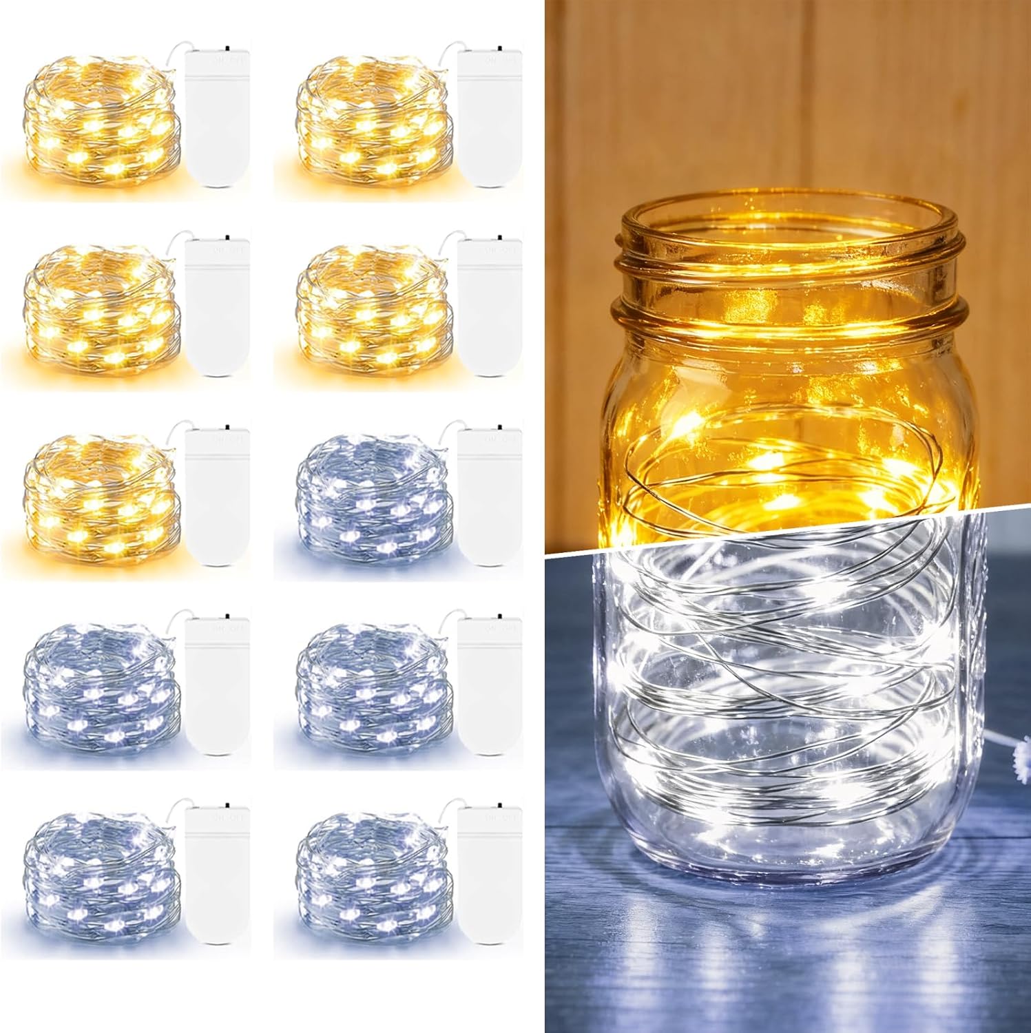 10 Pack Fairy Lights Battery Operated - 7ft 20 LED Twinkle Lights Copper Wire Mini String Lights Firefly Lights for Mason Jars DIY Crafts Christmas Centerpiece Table Decor, Warm White & Cool White