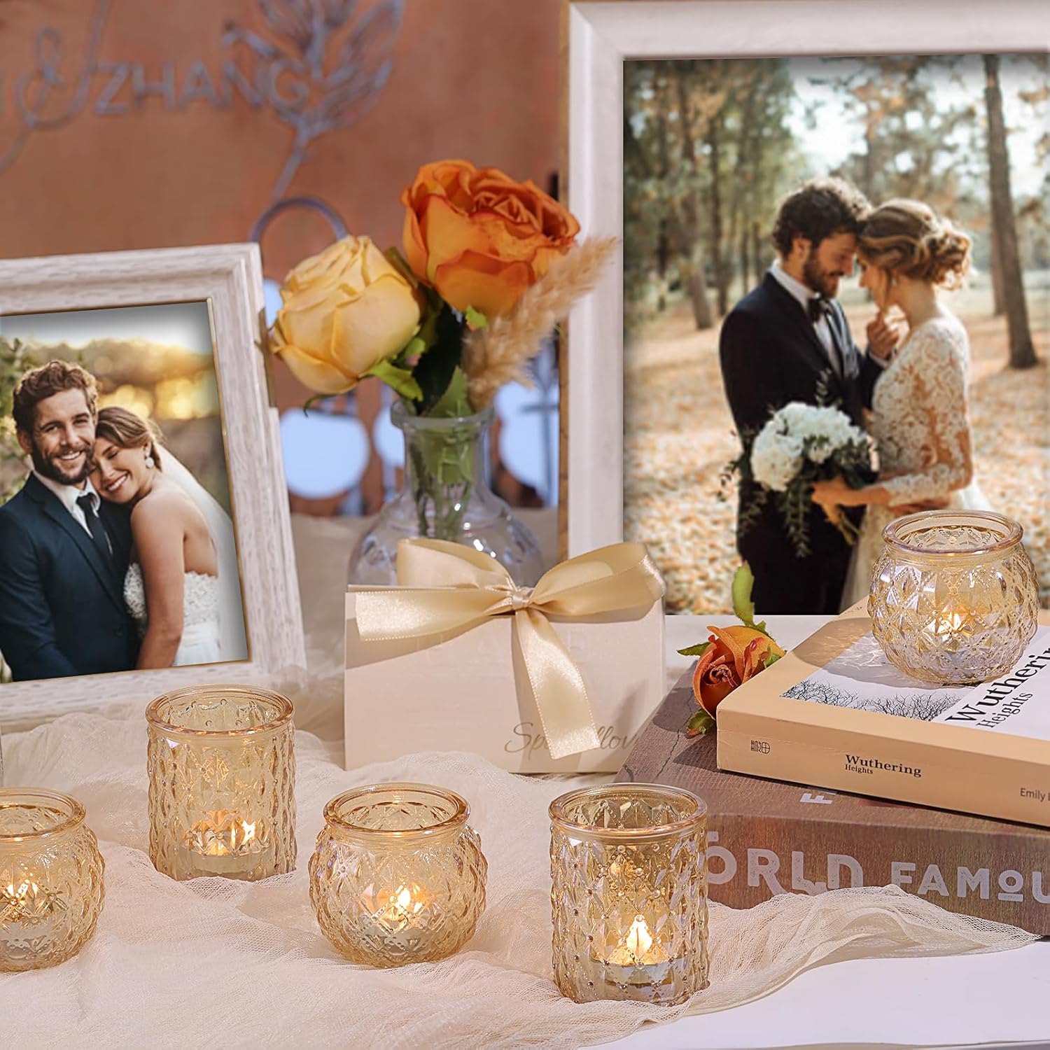 - Gold Votive Candle Holders: The glittering surface of the golden candlestick exudes exquisite and elegant. Its lustrous golden hue adds a touch of luxury to any space, casting a warm and inviting glow when a candle is lit within.
