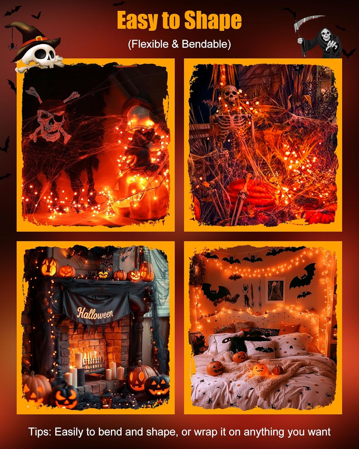 - Flexible Silver Wire: The starry moon fairy lights are made of a soft bendable silver wire.Flexible to wind this copper wire LED fairy light around the dried or fresh flowers or pumpkin, or wrapping the potted dead branches, or decorating the skeleton, great for halloween, haunted house