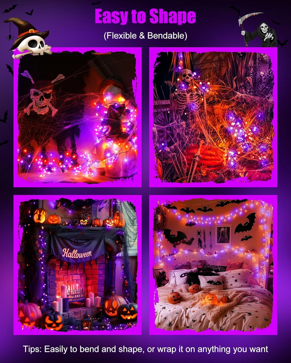 Fairy Lights Battery Operated, Twinkle String Lights Waterproof Silver Wire 5 Feet 60 Led Firecracker Starry Lights for DIY Wreath Party Bedroom Mason Jar Indoor Halloween Decoration, Orange & Purple