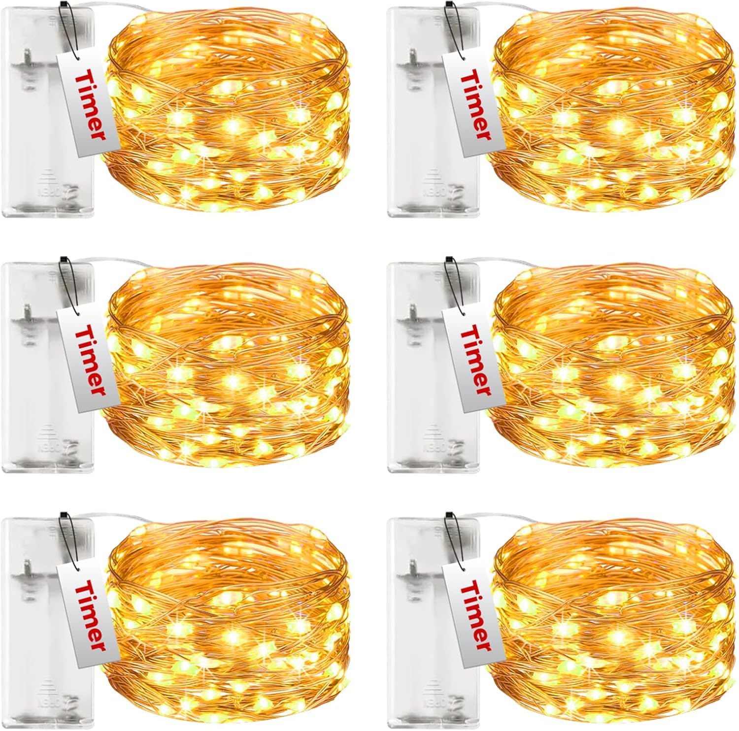 btfarm 6 Pack Fairy Lights Battery Operated with Timer, 30LED 9.8FT Twinkle Lights Waterproof, Copper Wire Christmas String Lights Battery Powered for Indoor Outdoor Wedding Party Holiday Decorations