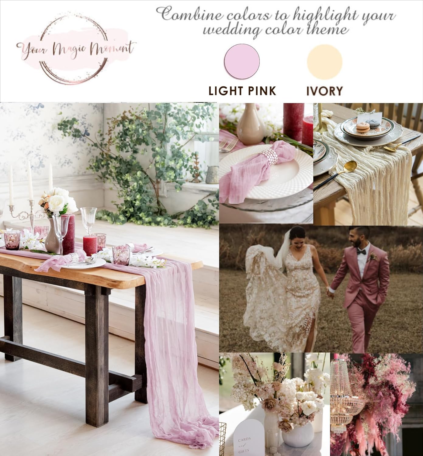 Light Pink Cheesecloth Table Runner Set of 2, 12 ft Cotton Gauze Runner Rustic Table Decorations, Cheese Cloth Fabric Bulk for Party Decor, Bohemian Table Runner Extra Long Boho Cheese Cloth (142 in)