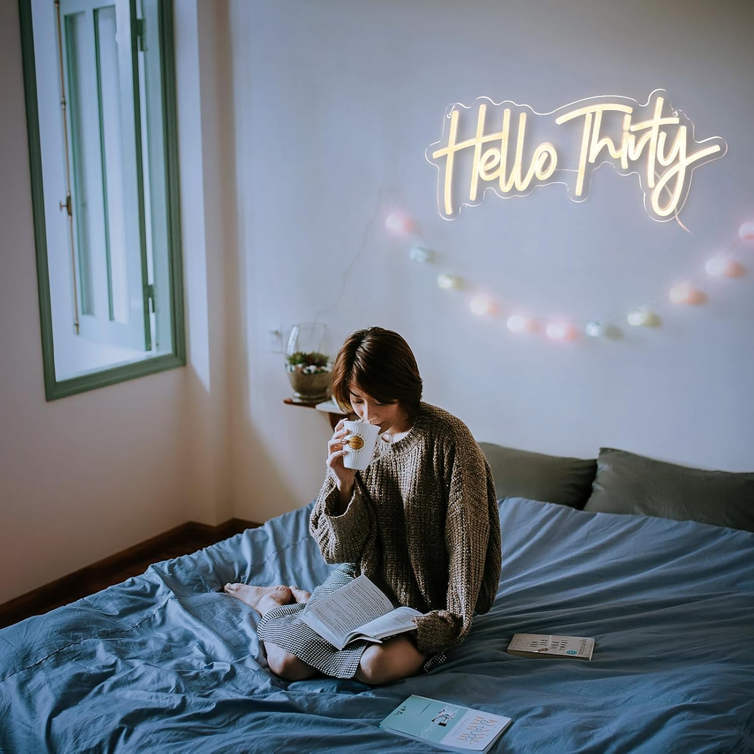 - 【A Gift For 30 Years Old】--warm Hello 30 neon lights, simple, fashionable, romantic and showcasing your personality. It is a perfect birthday gift exclusively for 30-year-old women. Giving a warm hello thirty neon light to a 30-year-old woman around us will definitely surprise her.