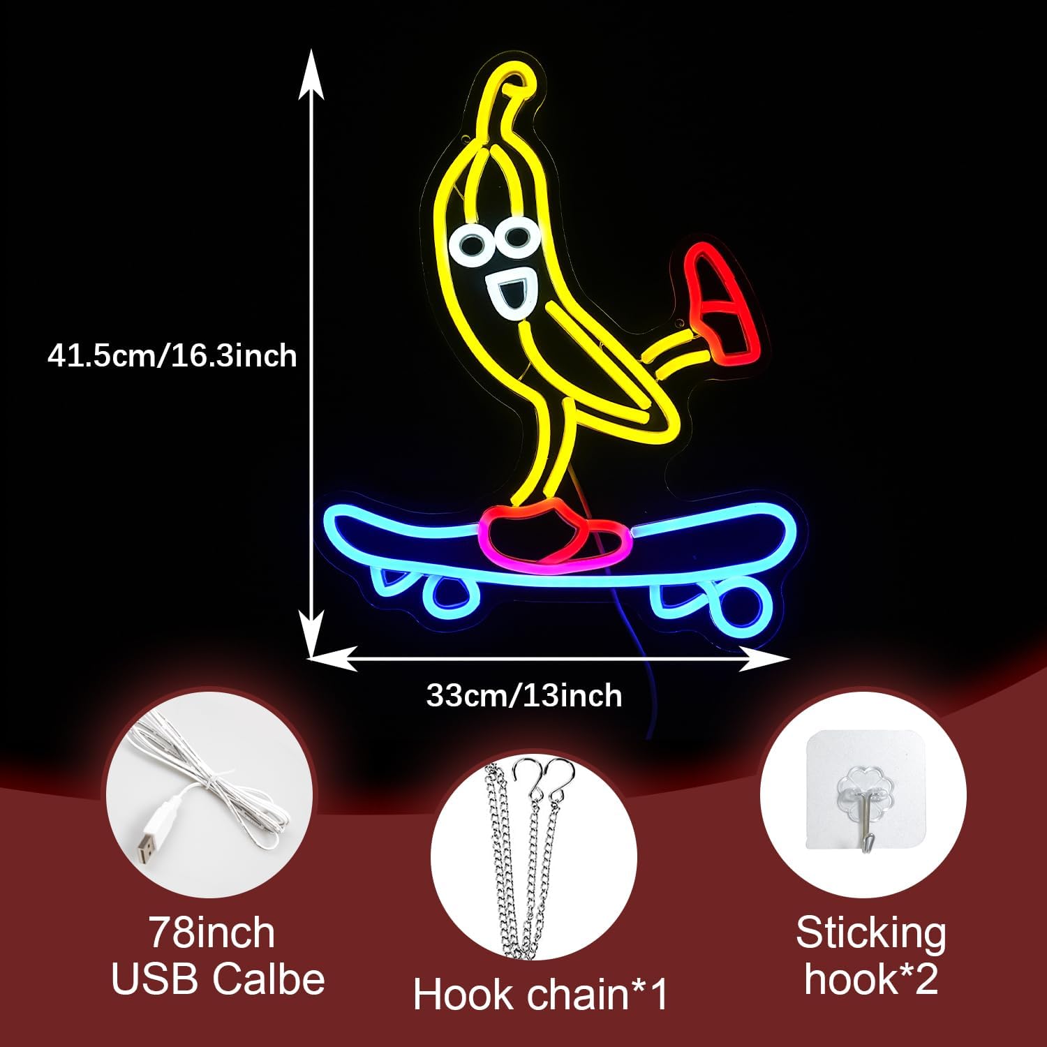 Skateboard Banana Neon Sign Cool Slide Banana LED Neon Light Dimmable Banana Light Up Sign for Shop Bedroom Party Bar Art Wall Decoration(16.3"*13")
