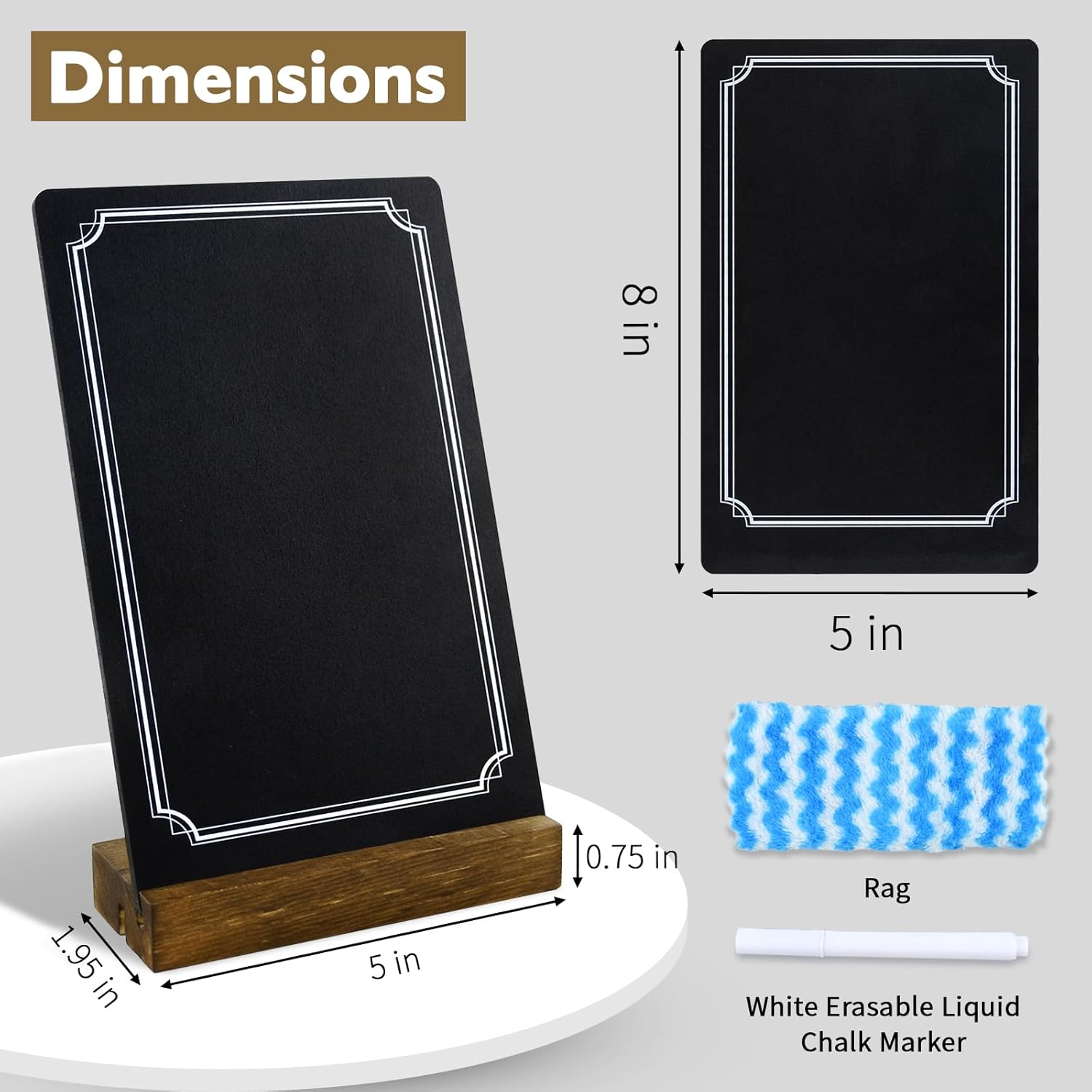 - 【Easy to Erase】The small chalk board with stand can be written by the water soluble chalk or erasable markers, and the content on the chalk boards can be easily erased by the damp rag or the wet tissue. The reusable feature makes the chalkboard signs tabletop perfect for business, home and parties.