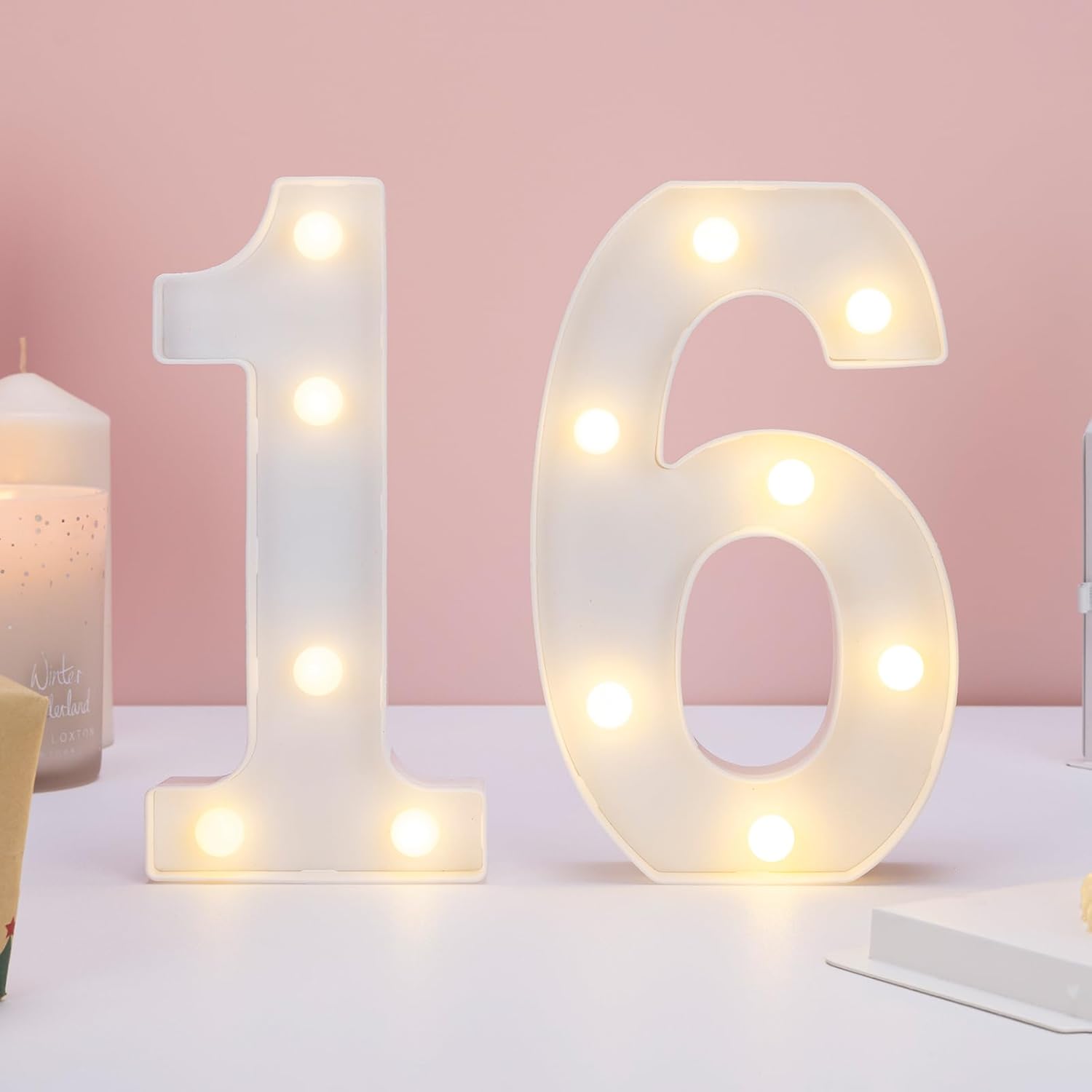 Decorative Led Light Up Numbers, 16th Birthday Decorations, Warm White Led Numbers Lights, Lighted Marquee Number Sign for Sweet 16th Party Decor