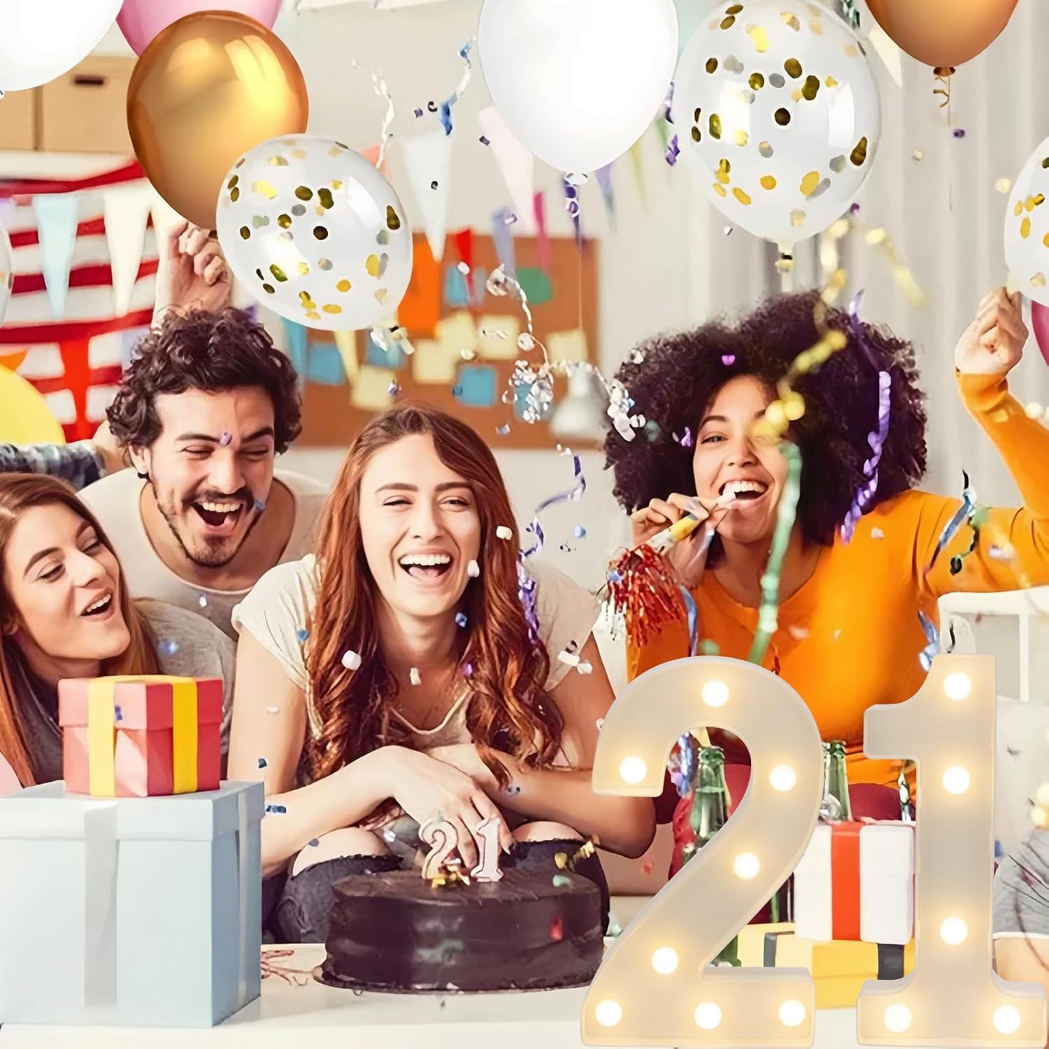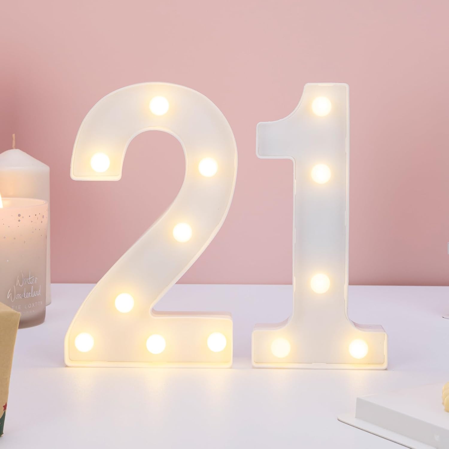 - 【Light Your Birthday Day】 Light up your birthday party with our light up letters spelling out ''21''.Light up the wonderful moments with LED number lights, warm color lights create a warm atmosphere, make your 21th birthday party more unforgettable and sparkling!
