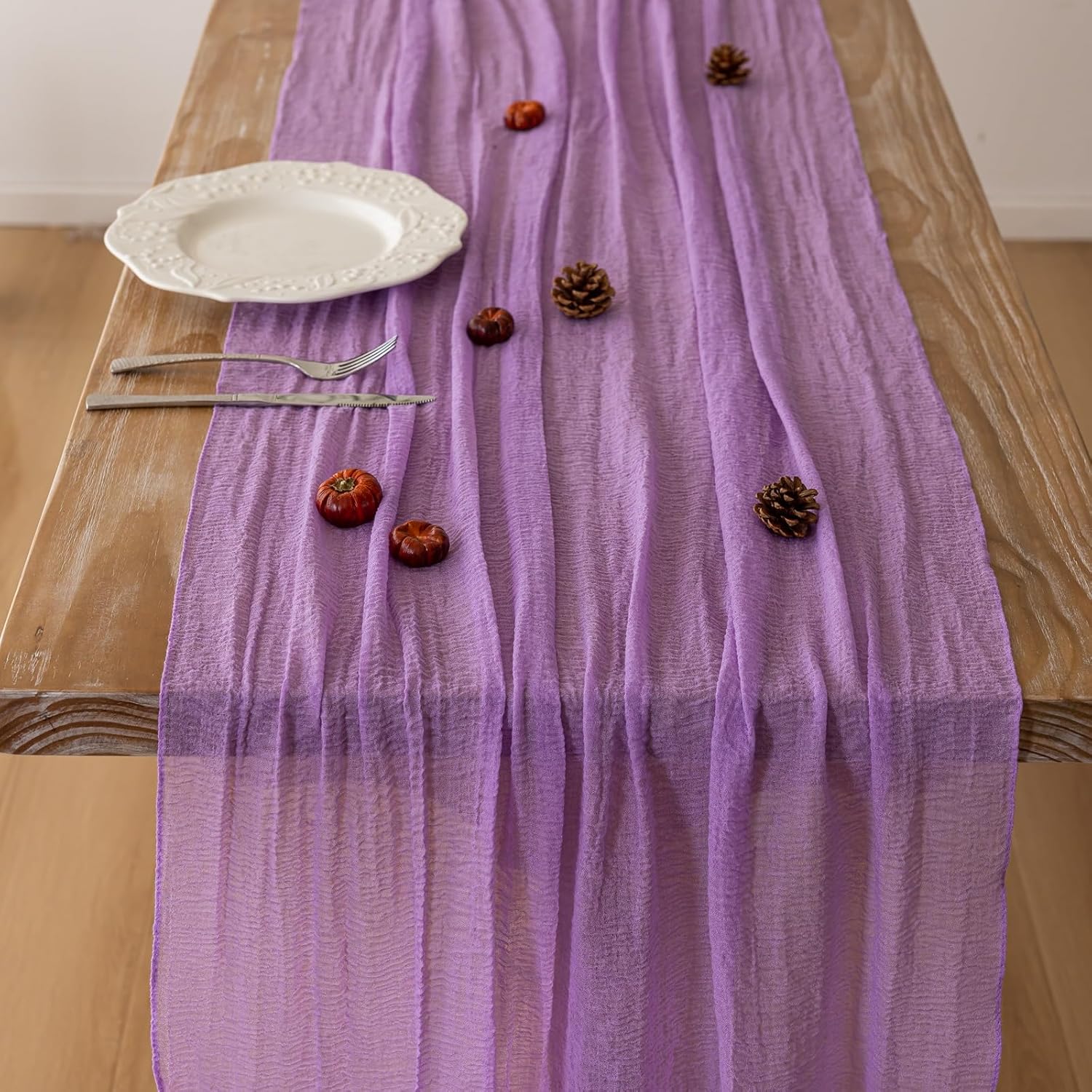 Table Runner Lavender Gauze Rustic Boho Lilac Cheesecloth Grape Table Runner 120 Inch 10 FT for Wedding Baby Bridal Shower Birthday Bridgerton Party Long Sheer Home Decorations