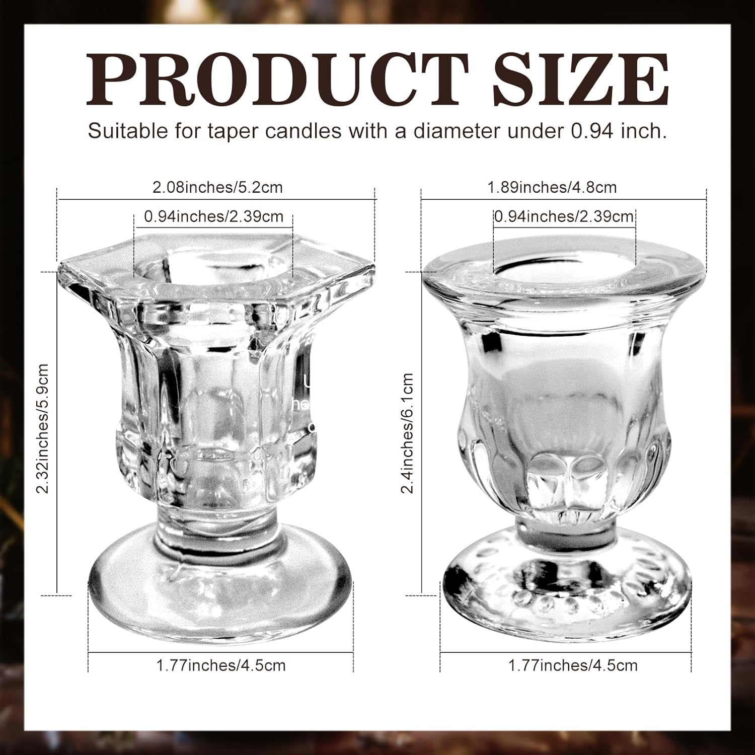 - Compact Size: Measuring about 2.08 x 2.32 inches (5.2 x 5.9 cm) and 1.89 x 2.4 inches (4.8 x 6.1 cm), these clear candle holders are perfect for coffee tables, fireplaces, dining tables, cupboards, and more.