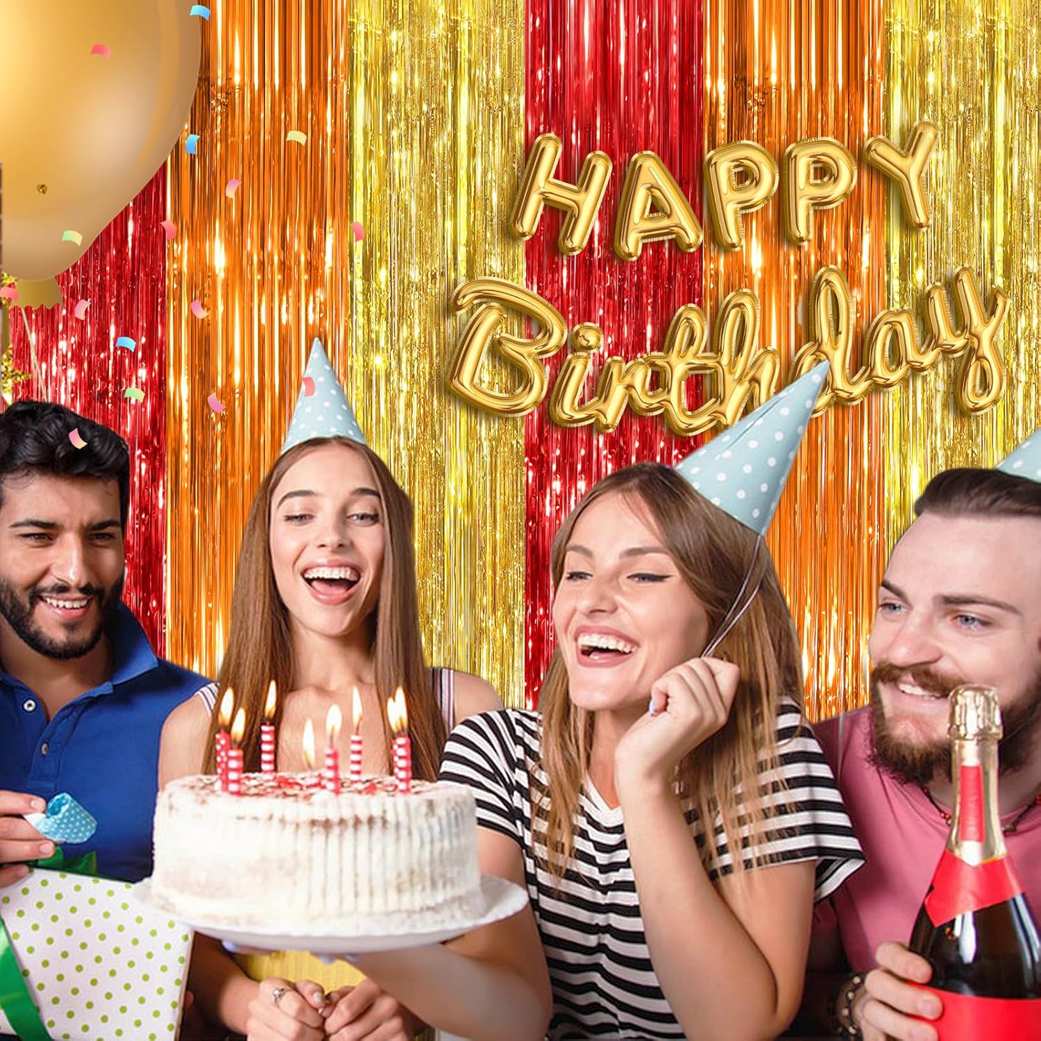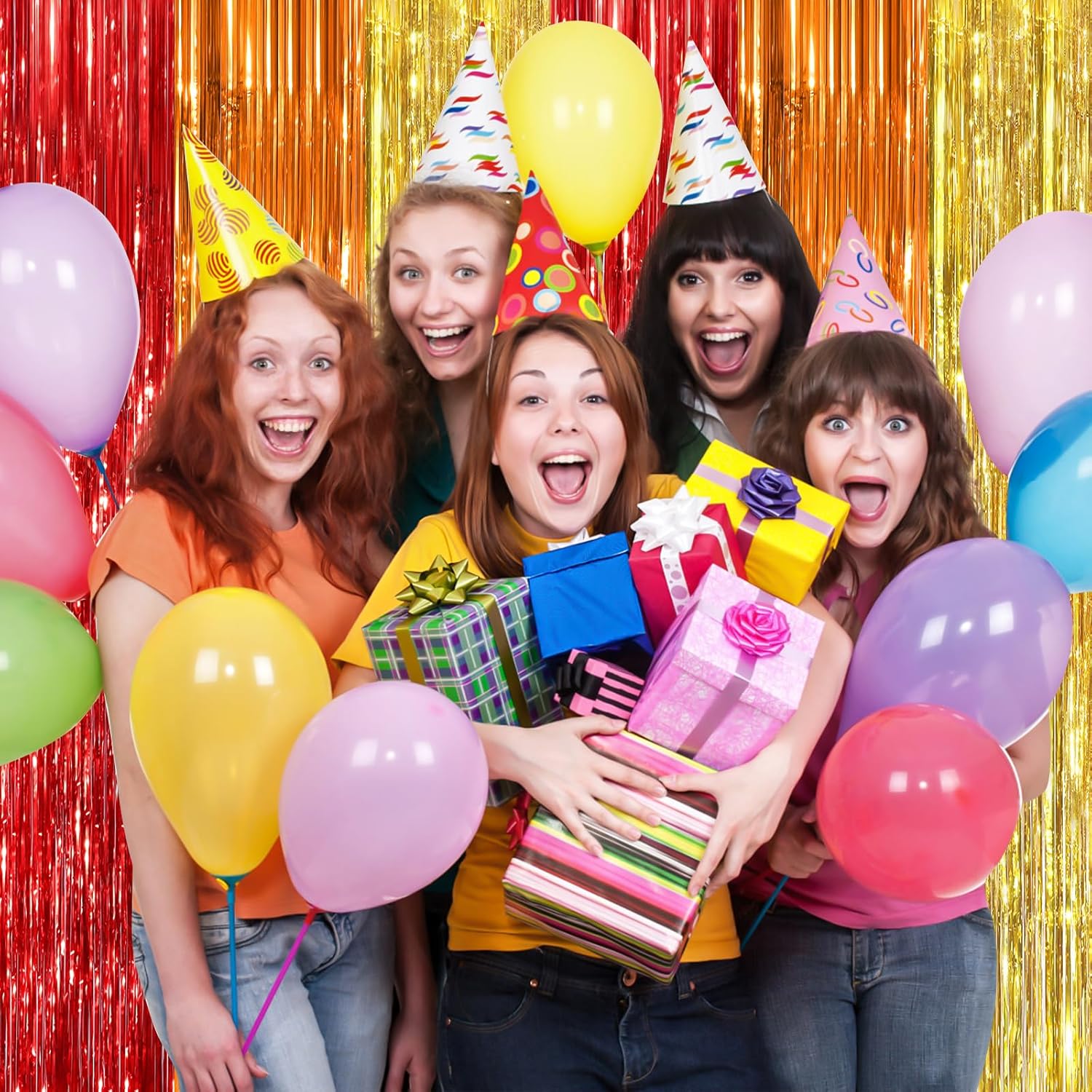 red orange gold Fringe Curtain Party Streamers 2Pack 3.3 x 8.3 Ft Foil Fringe Backdrop Curtains for Birthday Wedding Bridal Baby Shower Holiday Tinsel Streamers Rainbow Party Decorations Door Streamer