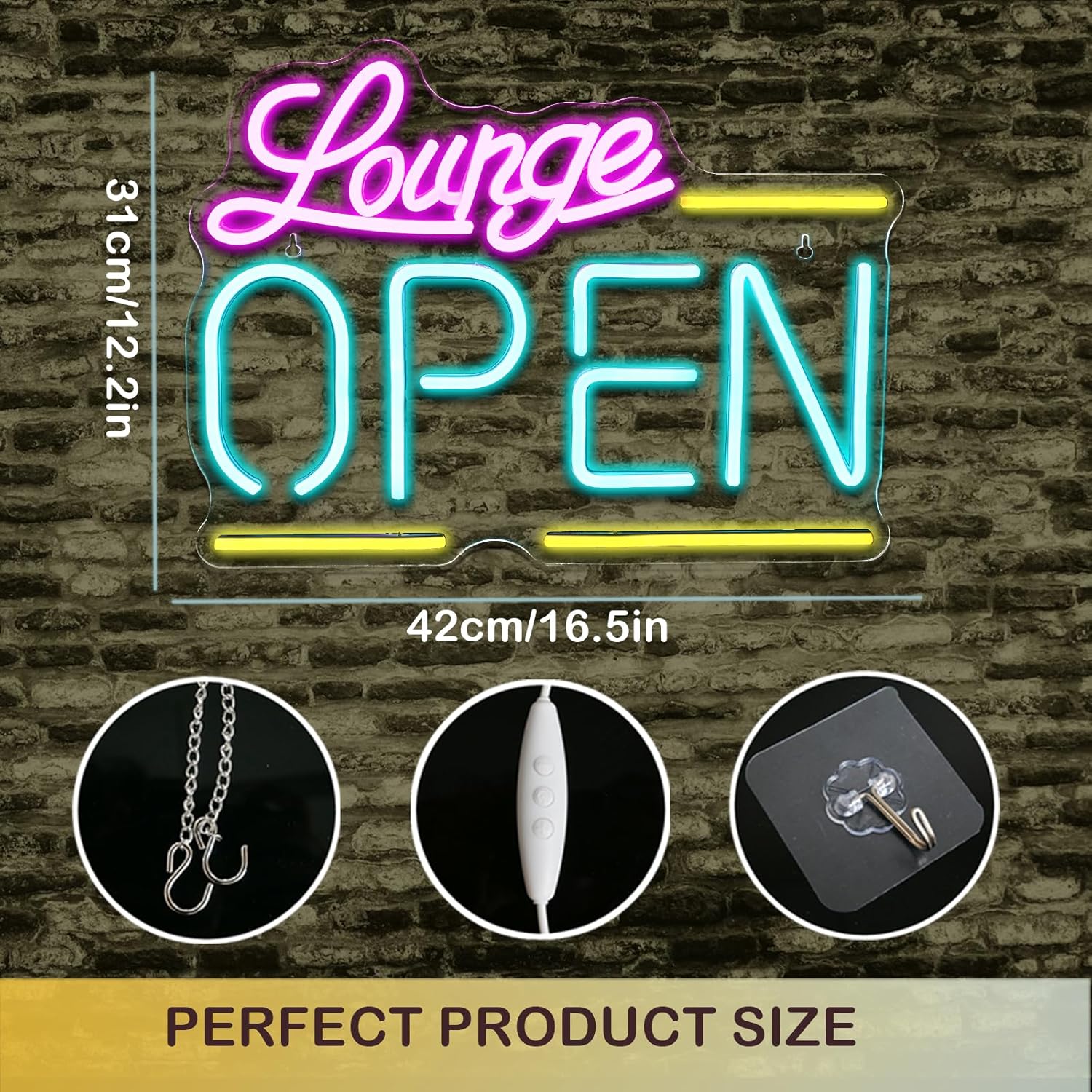 - 【Business Decor】This lounge open neon sign is an ideal choice for decorating bars, nightclubs, hotels, cafes, restaurants, VIP rooms, or beauty salons. It also makes for a thoughtful and stylish gift for birthdays, Christmas, New Year's, or any special occasion, ensuring your friends and loved ones will be delighted.