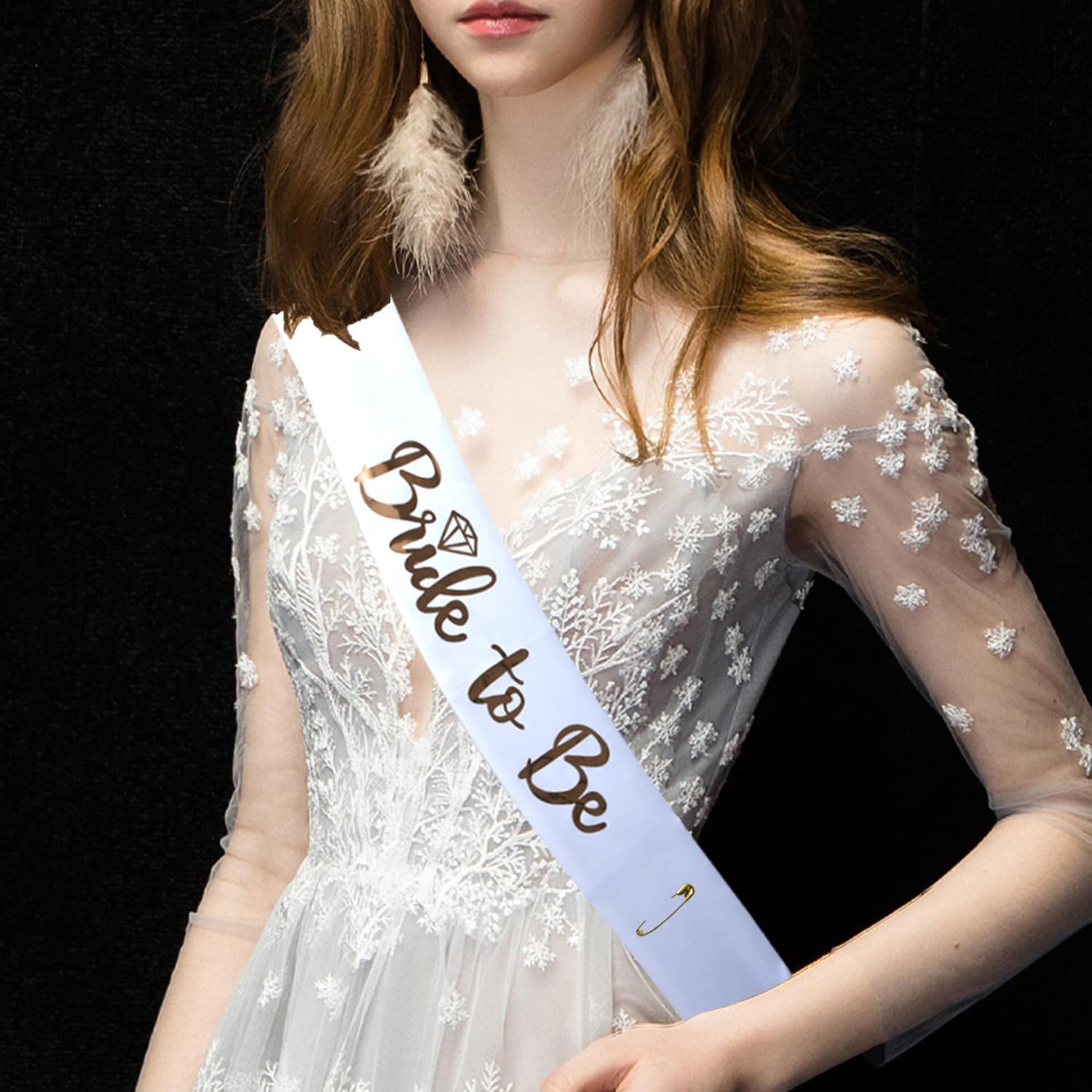 - Elegant Bride Sash: Measure about 3.74 x 63 inches. The sash is made of smooth satin fabric, pressed with gold foil Words “Bride to Be”, nice shape and super attractive. There also comes a pin to hold the sash, very easy and comfortable to wear.