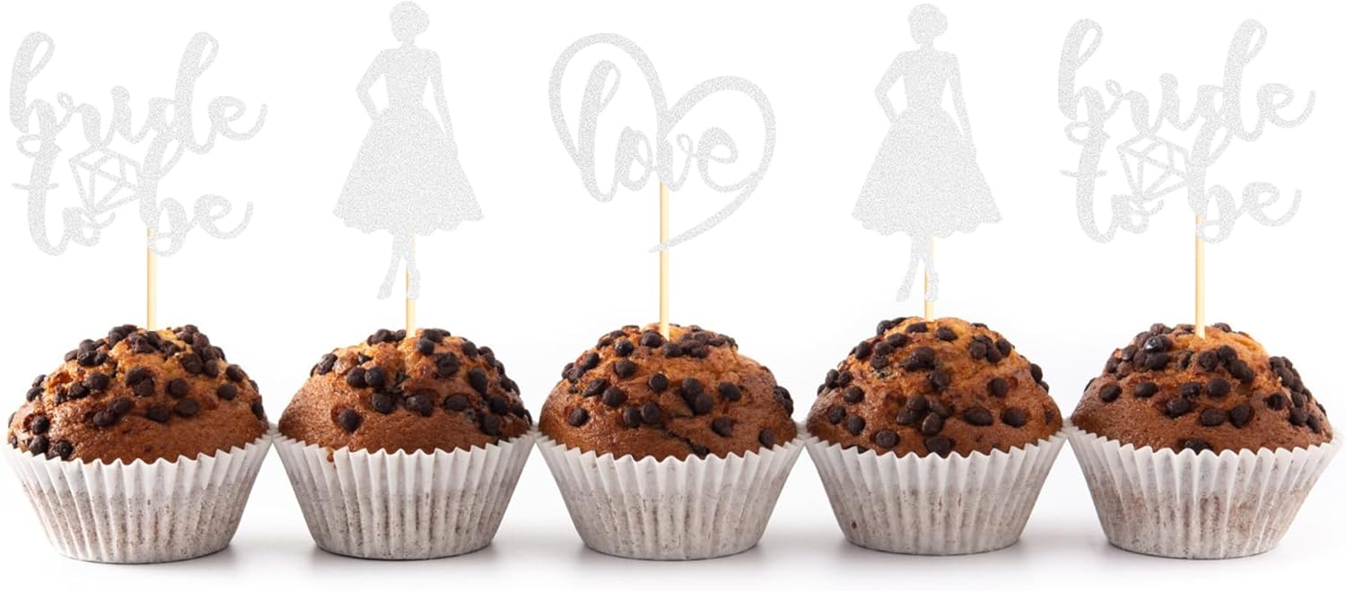 - Unique Design: This 24PCS Bride to Be Cupcake Toppers with Heart Dress to make your Wedding Engagement party stand out! The delicate design like your a match made in heaven makes your dessert look more romantic. Shimmering glitterscreate a lovely and sweet feel for your wedding party
