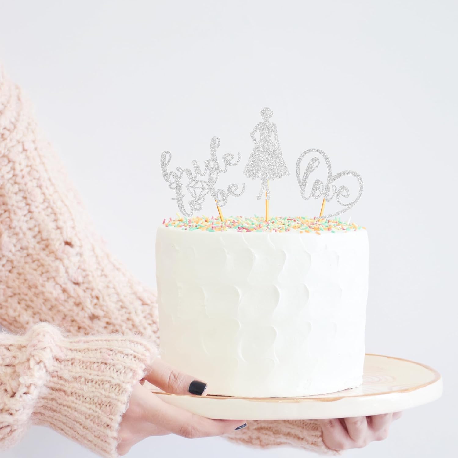 - Package Included: 3PCS Silver Glitter Bride to Be Cupcake Toppers add "Ring"sign. Already assembled so you can insert into wedding engagement party decoration, which make your cake icing on the cake. Size: W 2.3 inch * H 4.72 inch / W 6 cm * H 12 cm(Including Stick)