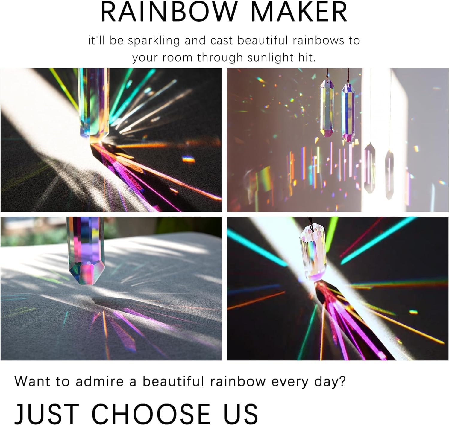 - [RAINBOW MAKER] - The large hexagone light catcher prisms will create the most beautiful reflections when the sunlight or any other kind of light hits them