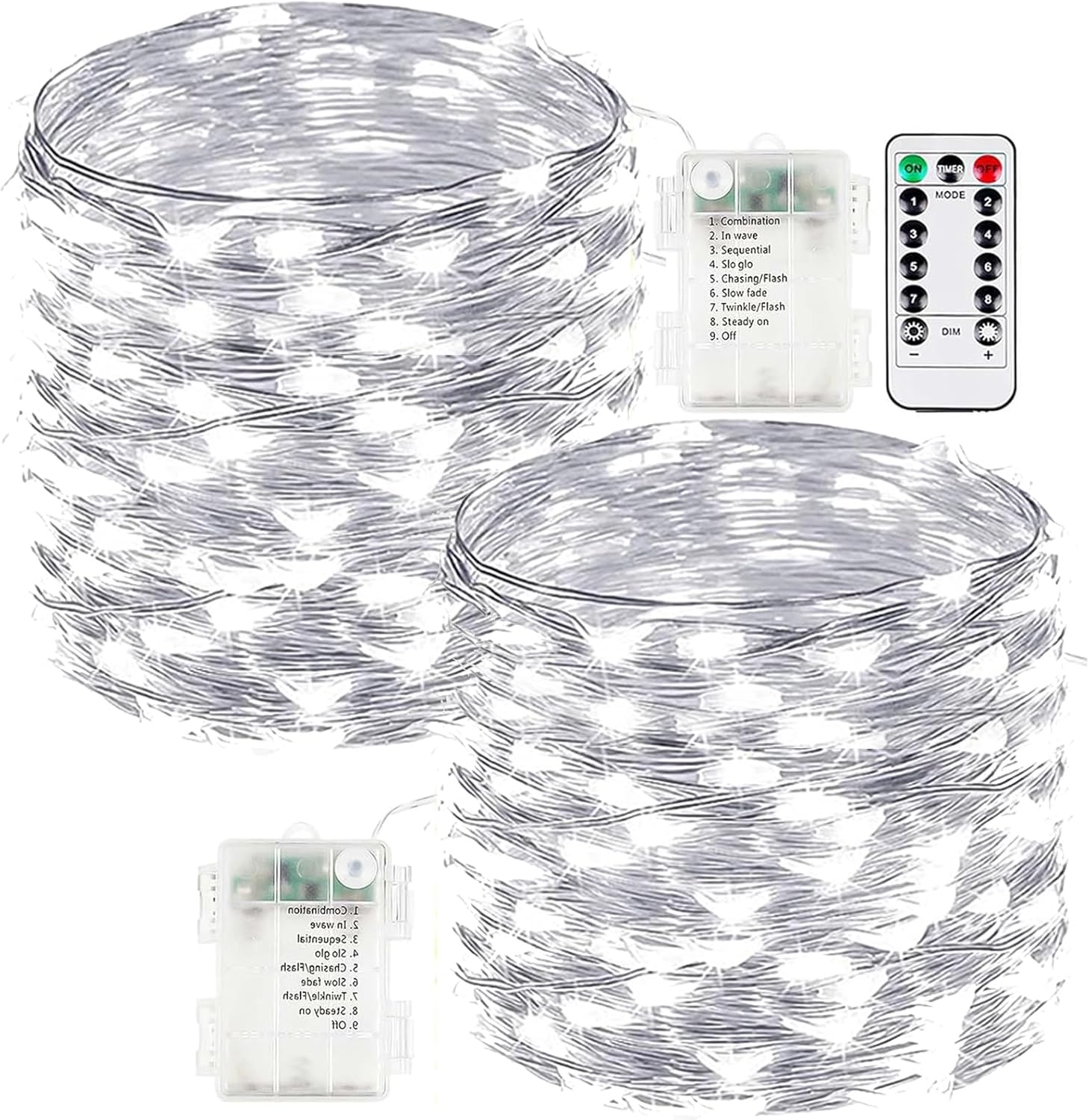 - Upgraded Christmas twinkle lights: Designed with ultra-bright LEDs and durable silver wire, these battery fairy lights are built to last and make an excellent choice for decorating bedrooms, centerpieces, balconies, and porches. Each set includes 2 strands of lights and 1 remotes, each 66ft long with 200 LEDs, powered by 3 AA batteries (not included)