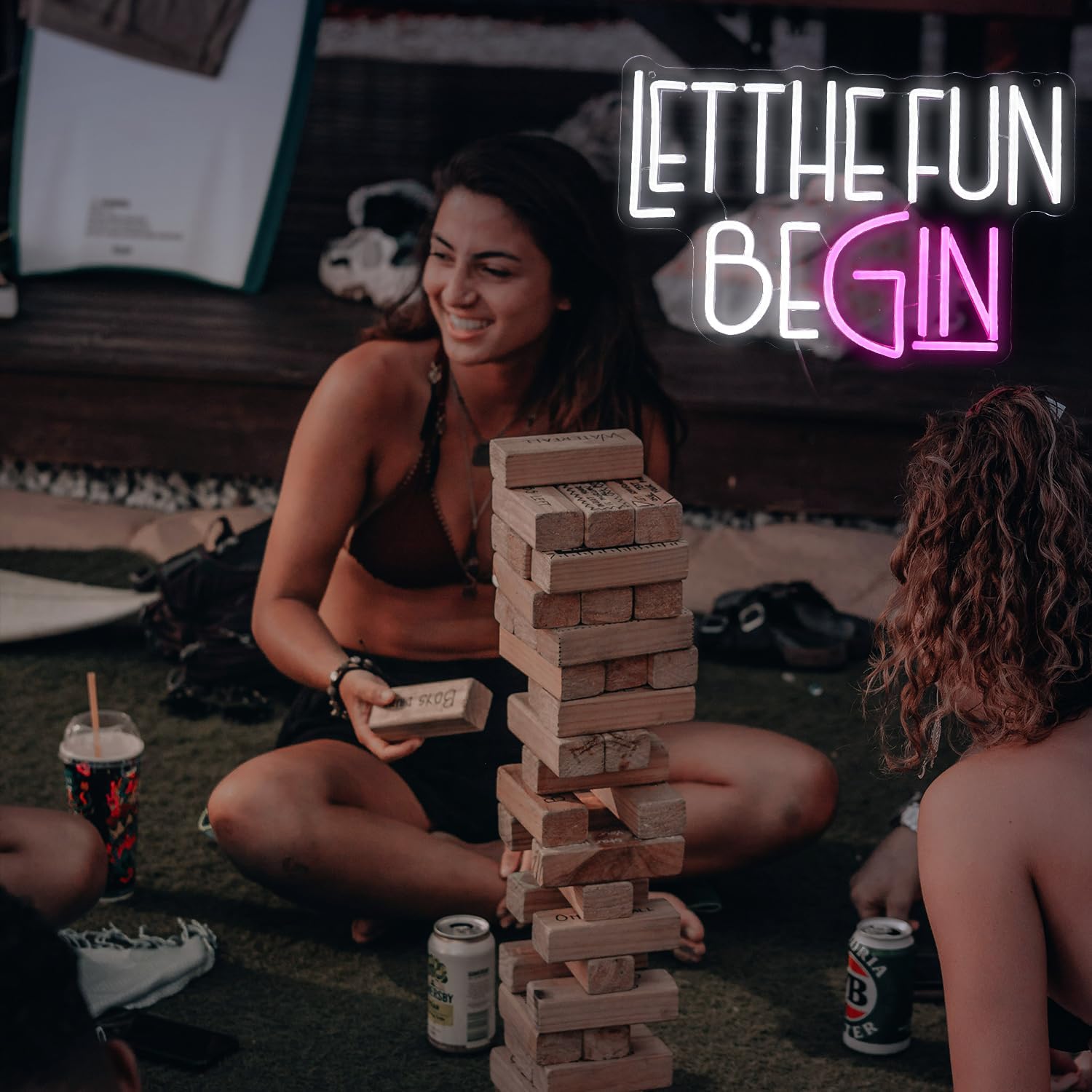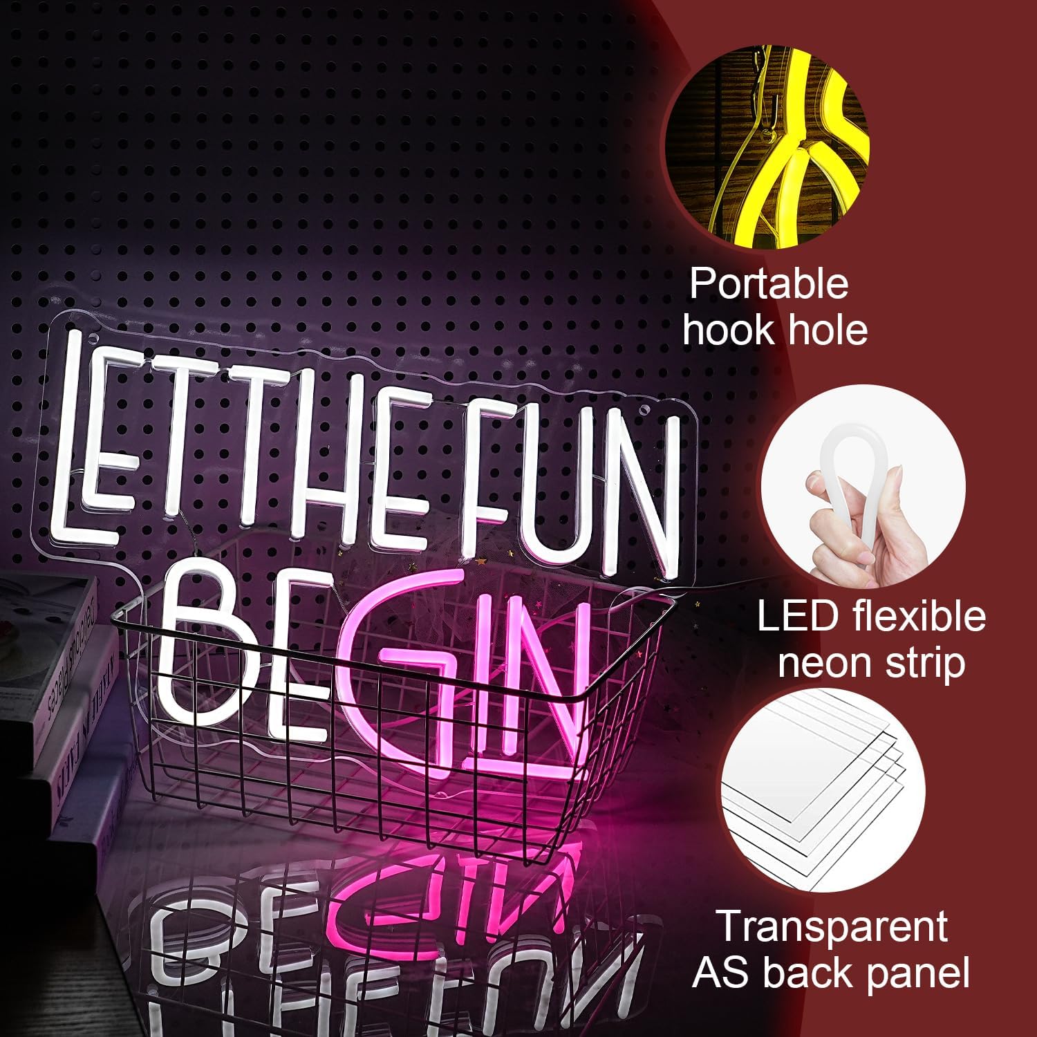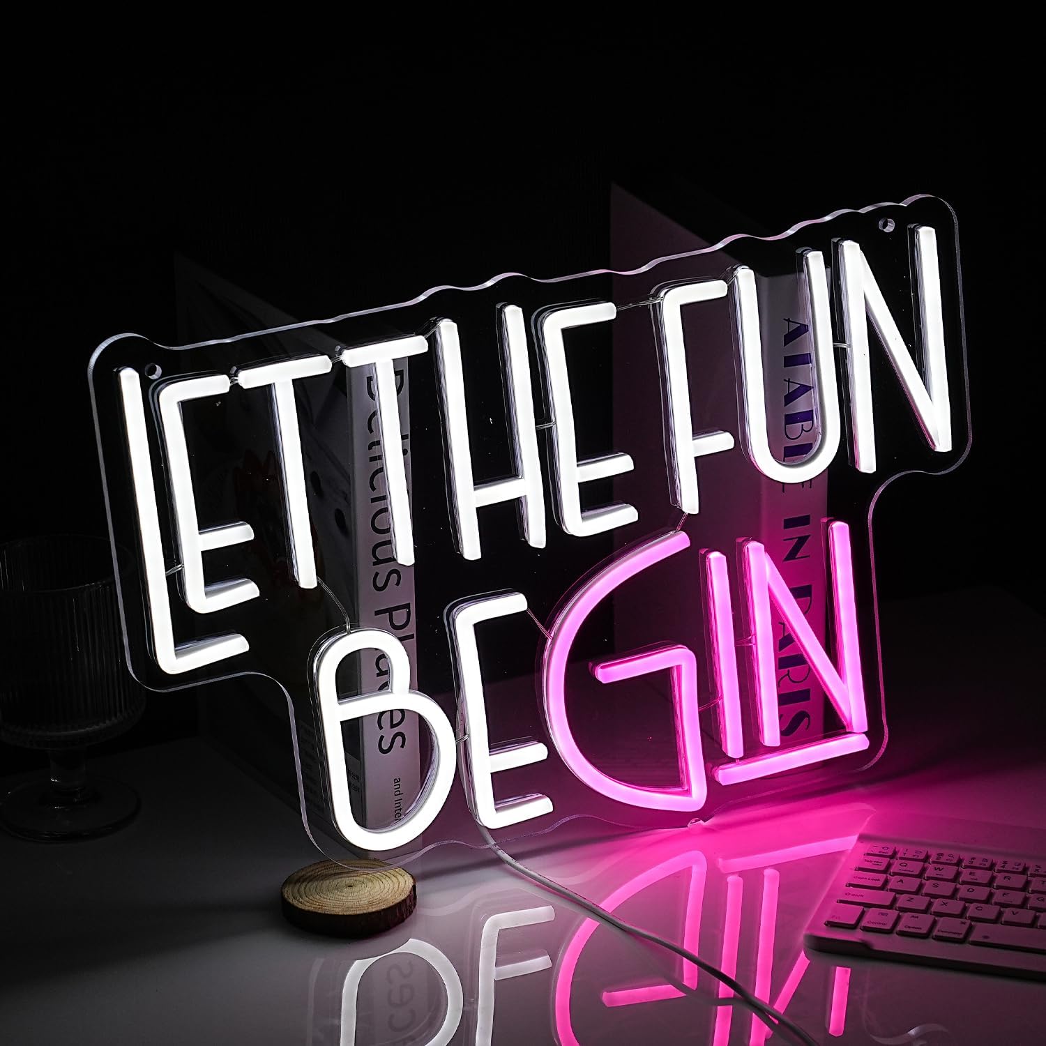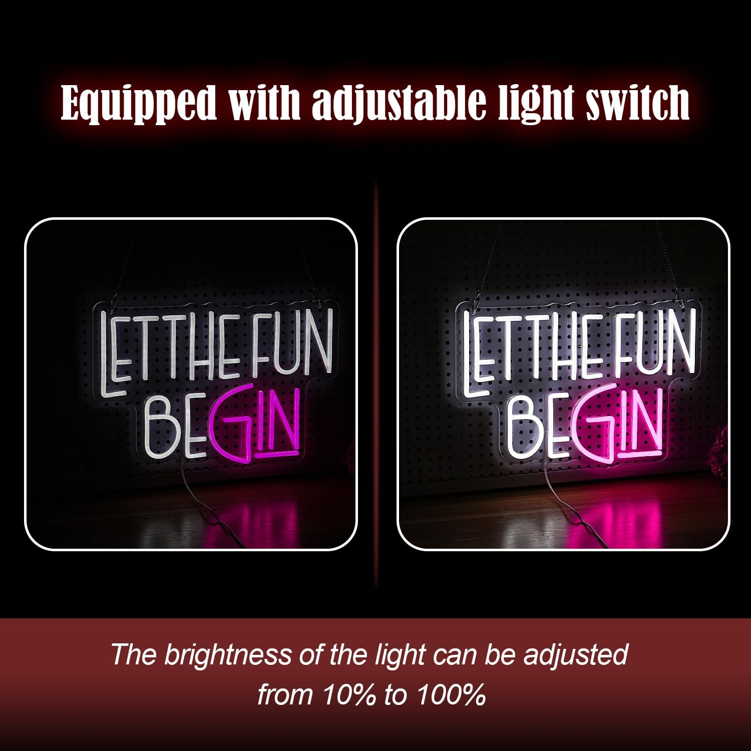 Let The Fun Begin Neon Sign USB Powered White Pink Fun Light Up Sign for Wall Decor Dimmable Led Letters Neon Light for Birthday Wedding Halloween Christmas Party Home Decor (15.8 * 11.8In)