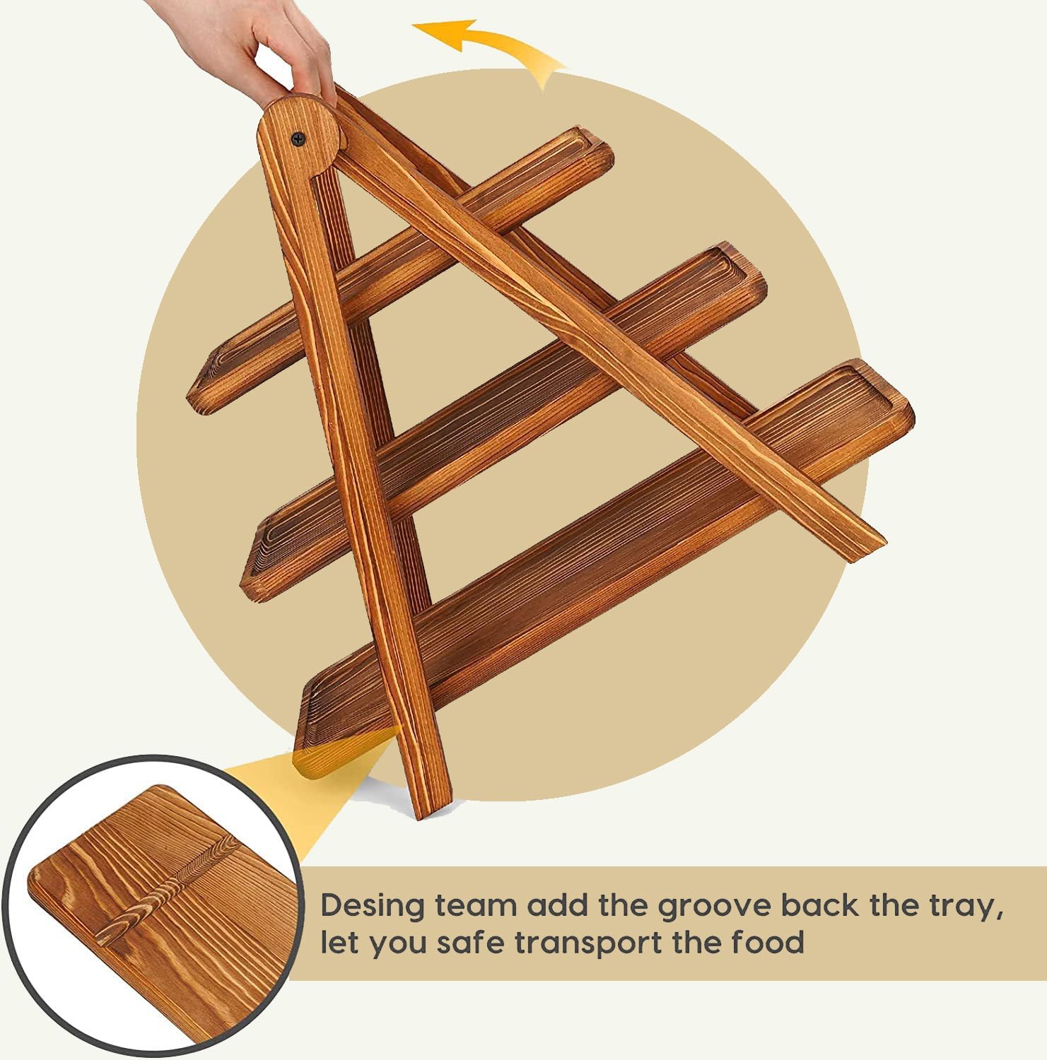 - Serving Tray Structure and Dimensions: This Serving Tray has a Detachable 3-tier structure,Stand with 3 rectangular trays of various sizes and 1 ladder rack,You can use it with the rack or use the wooden tray alone!The large tray 17" x 5.5" the medium tray 14"x 5.5" and the small tray 11"x 5.5",the ladder rack 13.46"x7"x17.04". accommodating a range of dessert sizes. The 4-inch spacing between tiers provides ample room for showcasing cakes, fruits, snacks, and other foods.