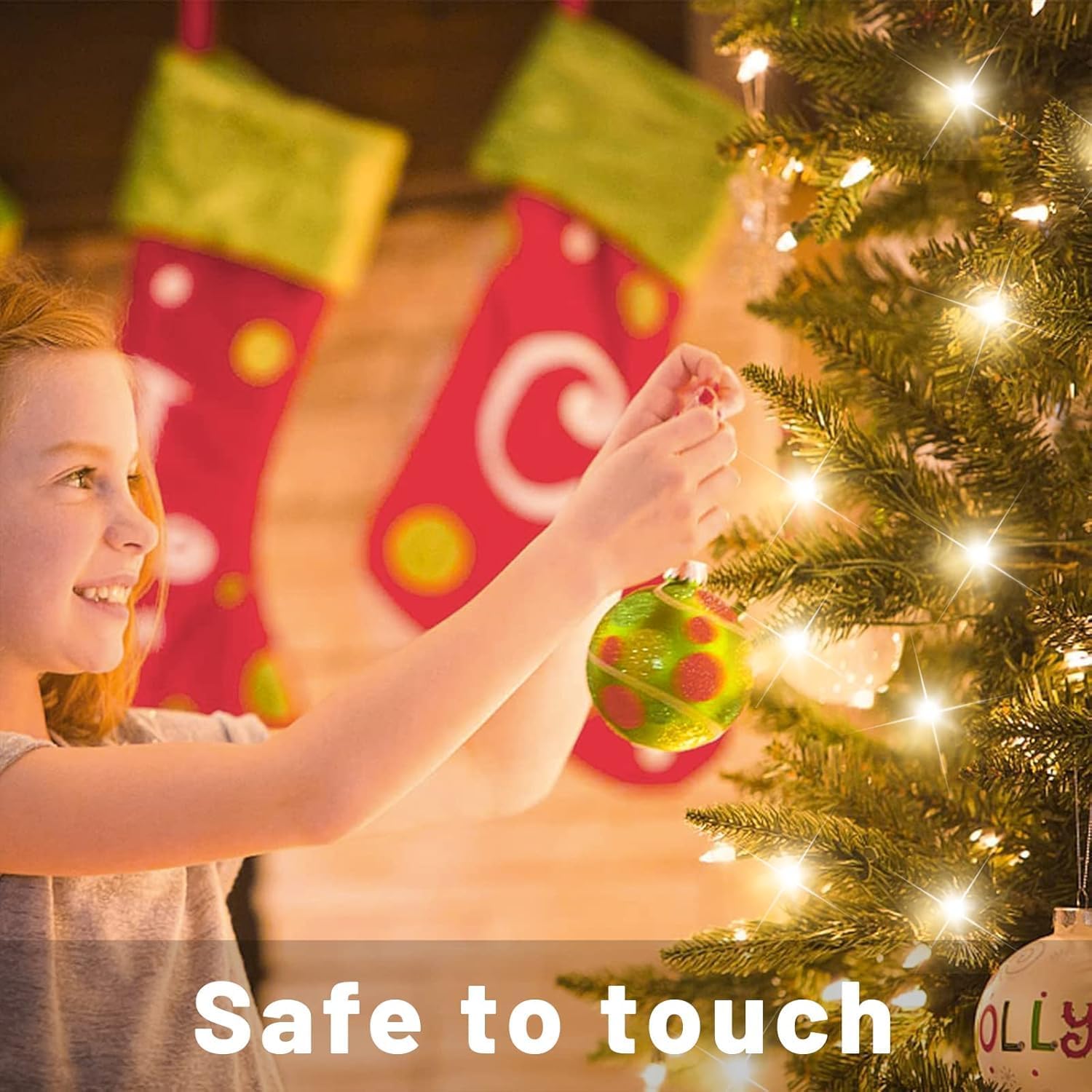 - Warm and soft light: The mini Christmas lights emit a warm and soft light, add the comfortable festival atmosphere, warm white light and green wire, which is great for Xmas Tree, garden, wedding, party, balcony decoration