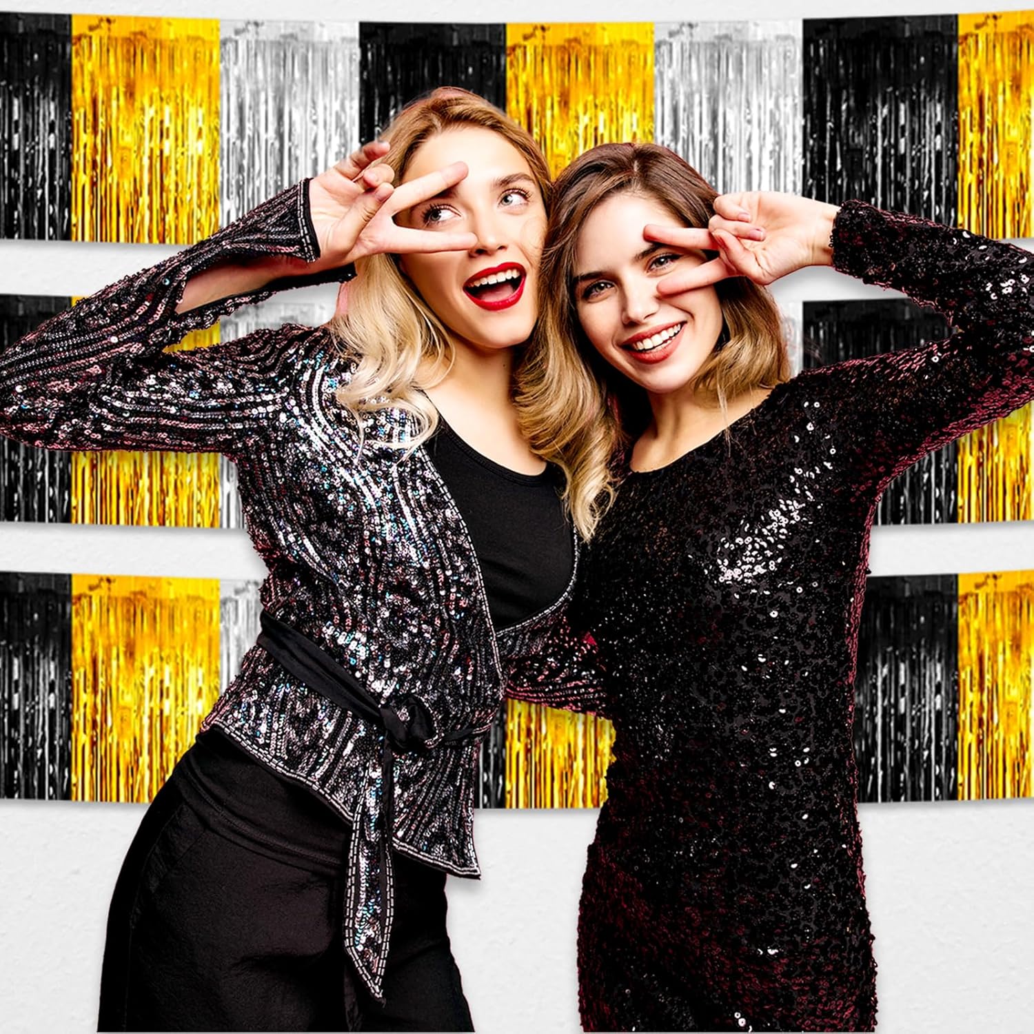 3 Pack 10 Feet Black Gold Silver Foil Fringe Garland Metallic Tinsel Streamers Banner Wall Hanging Curtain Backdrop for Parade Floats Christmas, Valentine's, Thanksgiving, Birthday Party Decorations