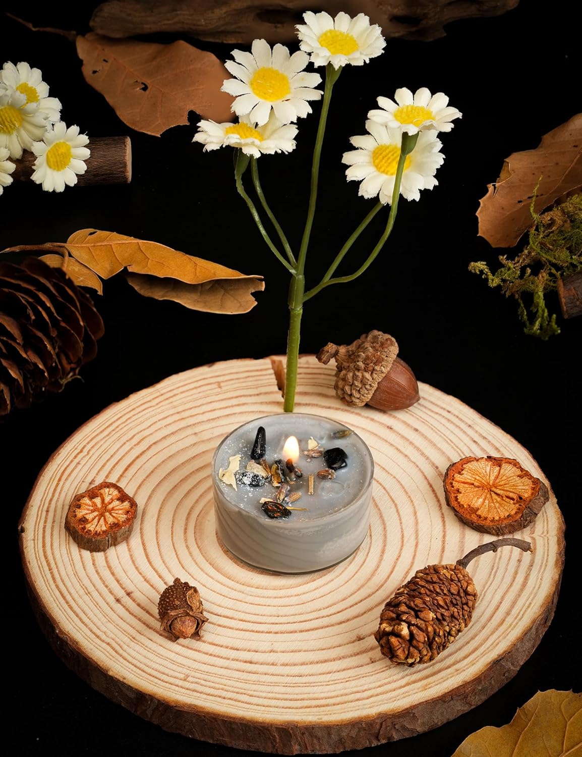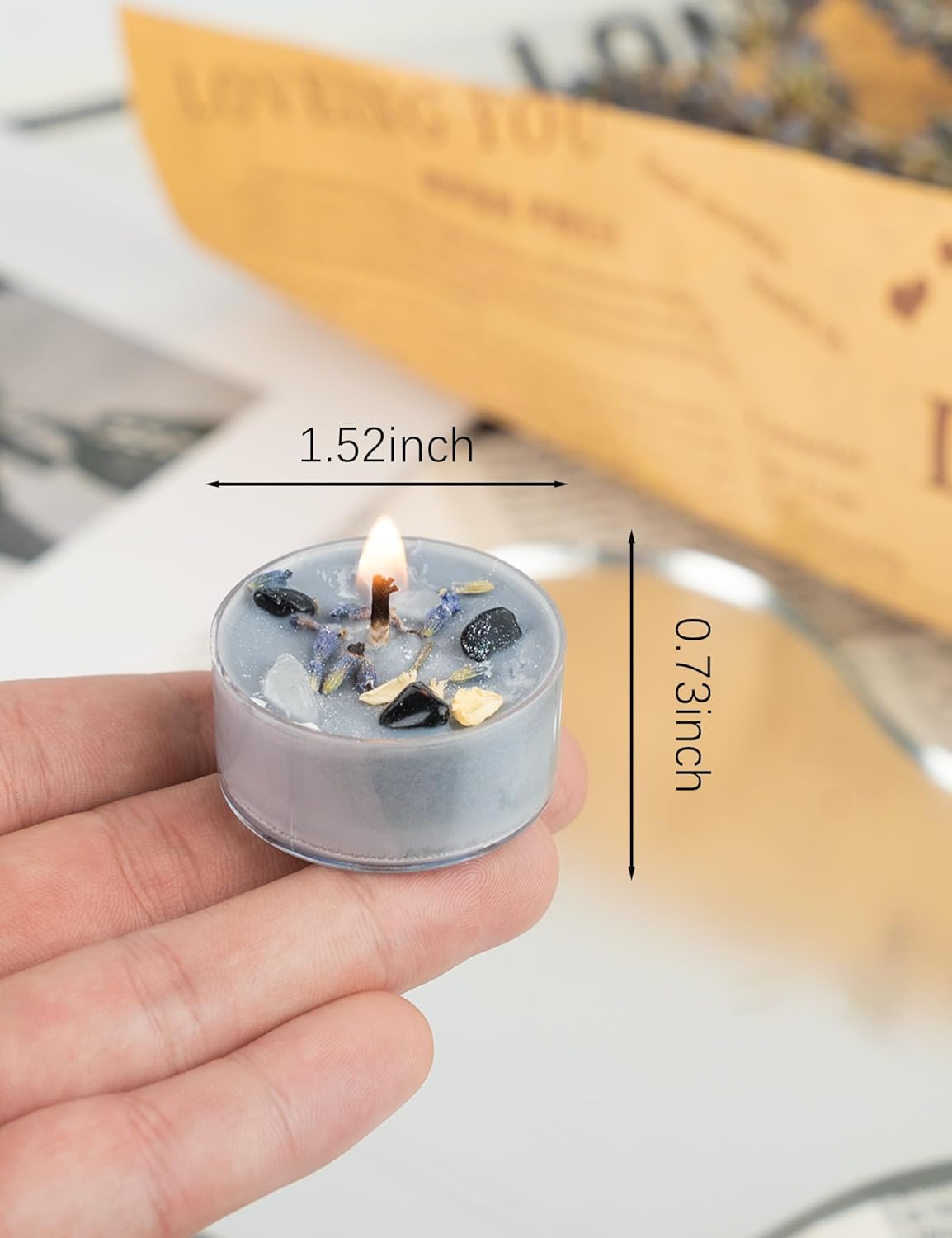 Tealight Soy Candles with Crystals And Herbs, Handmade Energy Candles, Healing Crystal Soy Candles, Aromatherapy Candles. (Grey)