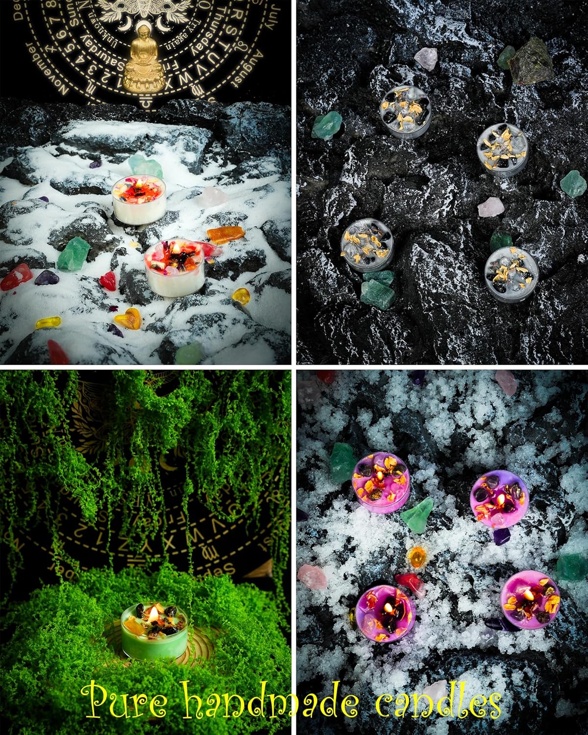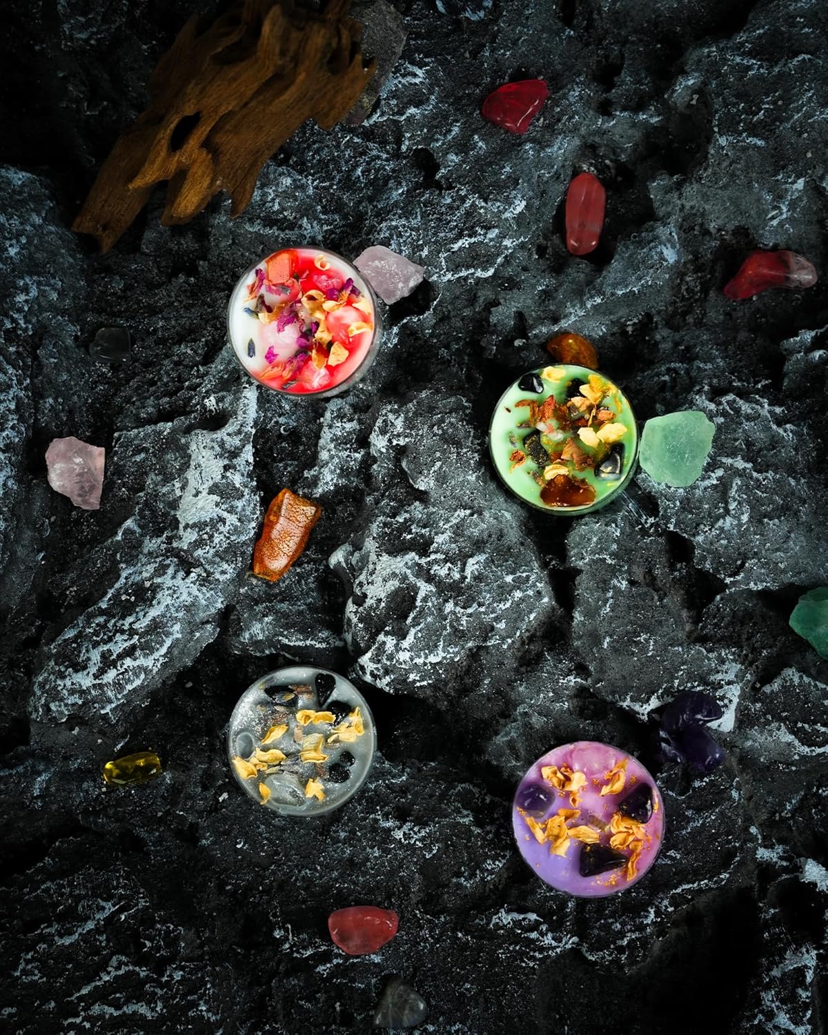 Tealight Soy Candles with Crystals And Herbs, Handmade Energy Candles, Healing Crystal Soy Candles, Aromatherapy Candles. (Mixed)