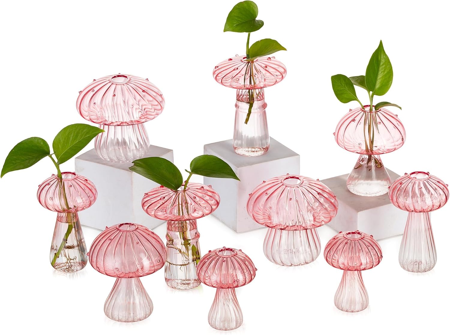 Glasseam Mushroom Plant Propagation Stations: Pink Glass Terrarium Jar Set of 10 Cute Planters for Indoor Plants Mini Propagate Station Unique Christmas Birthday Gifts for Women Home Office Decor