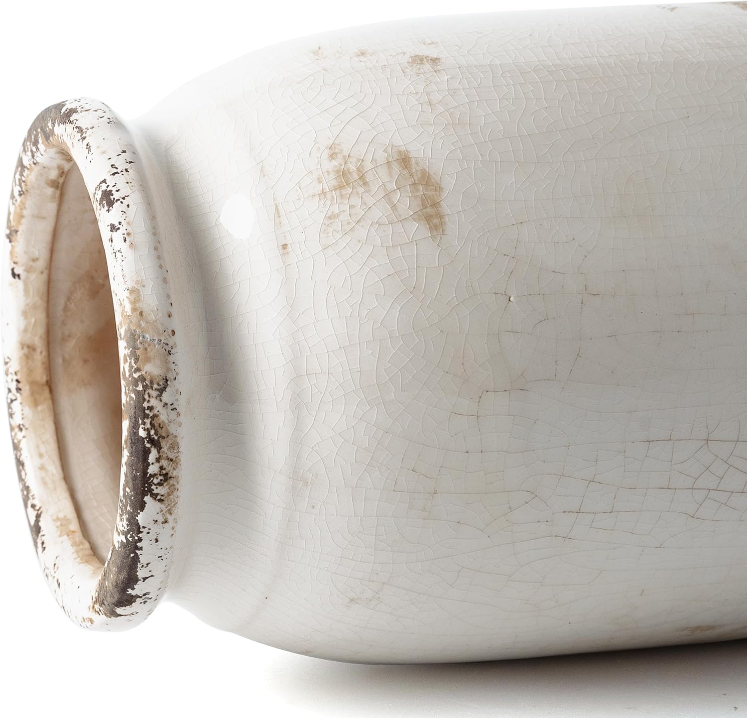 VICTOR & TERESA Rustic White Vase for Home Decor, Ceramic Vases for Flowers, Modern Farmhouse Decorative Vases for Pampas Grass,Table Accent, Mantel, Living Room,Bookshelf, Centerpieces, 8''