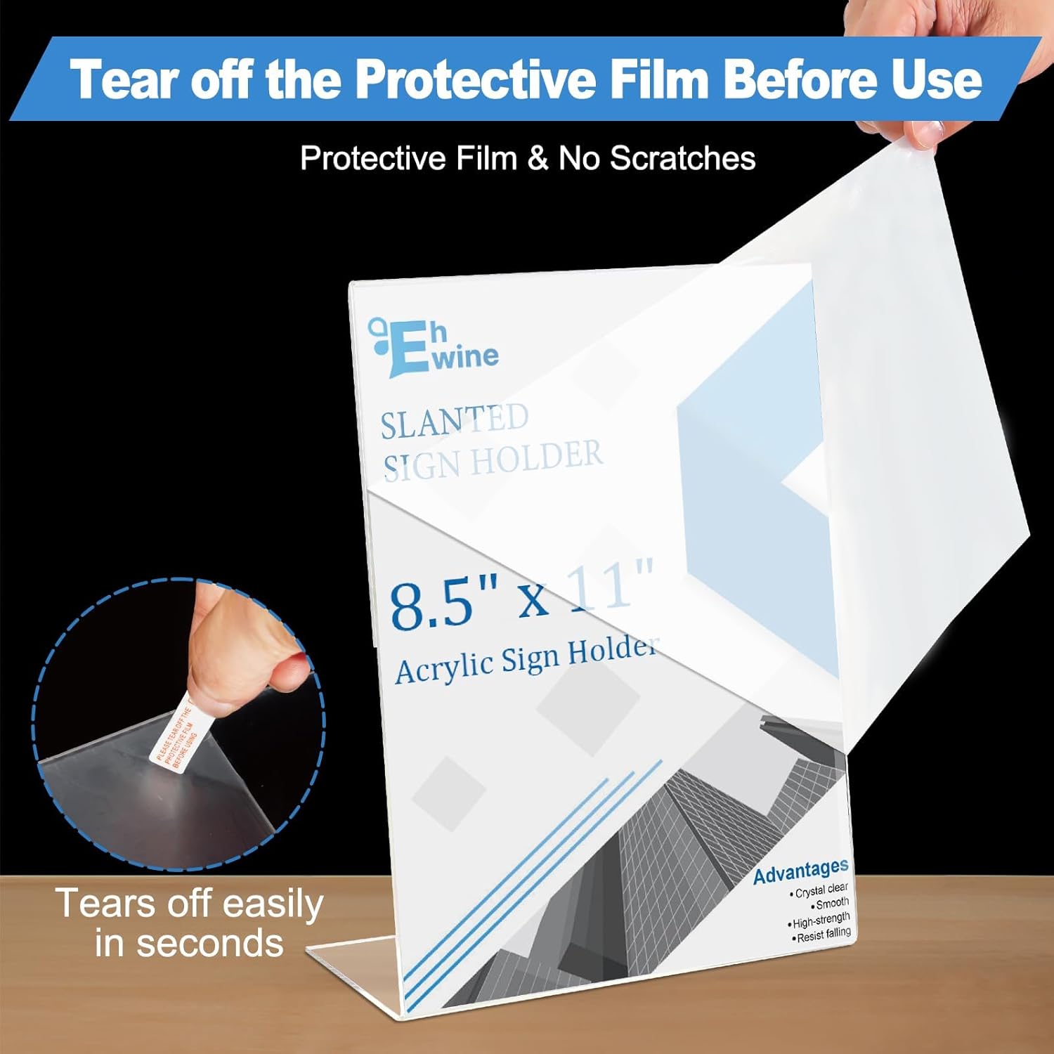 - Clear Picture Frame: EHWINE acrylic sign holders are very clear and transparent, and the L-shape design provides a professional look for your display. With no distortion or cloudiness, and your message will be conveyed with crystal clarity