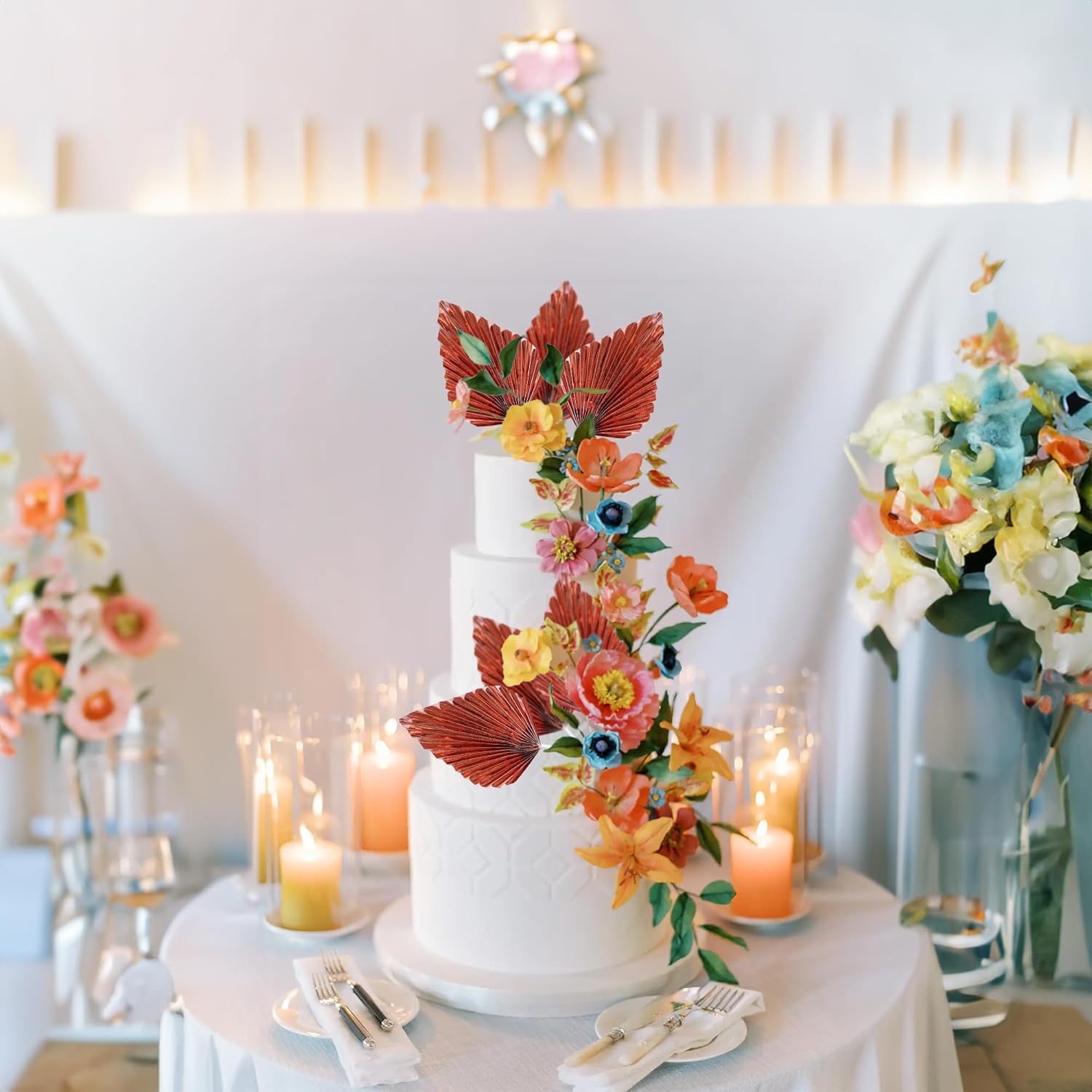 - -Premium Material: These Paper Palm Fan Cake Toppers are made of high quality paper material and food-grade toothpick, very safe to put them on cakes, cupcakes, ice cream, fruits, pie, dessert, cheese or any dish and food appetizer you want to decorate Wedding theme Party decorations.