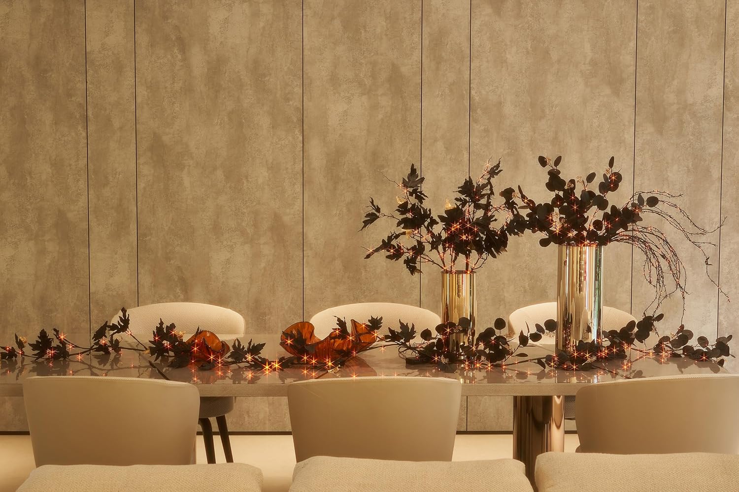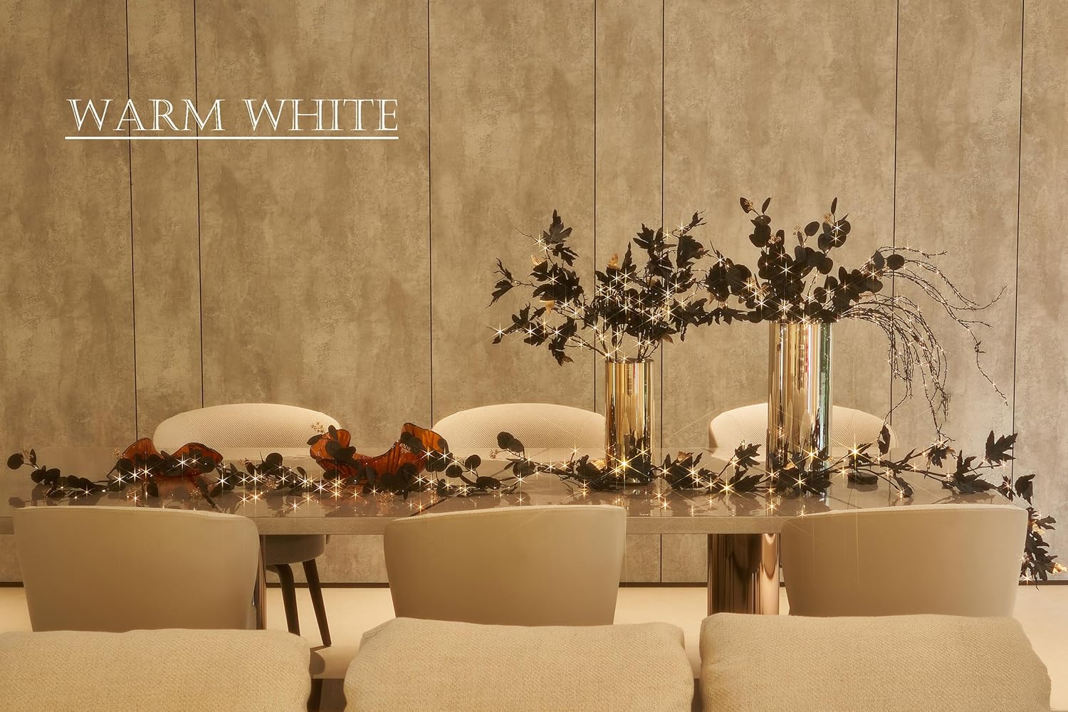 - Exclusive Design: Newly designed for 2024 Halloween, this twig lights is uniquely designed dramatic black eucalyptus leaves with 120L bi-color lights for home Halloween decor. Golden grains added for a delicate look