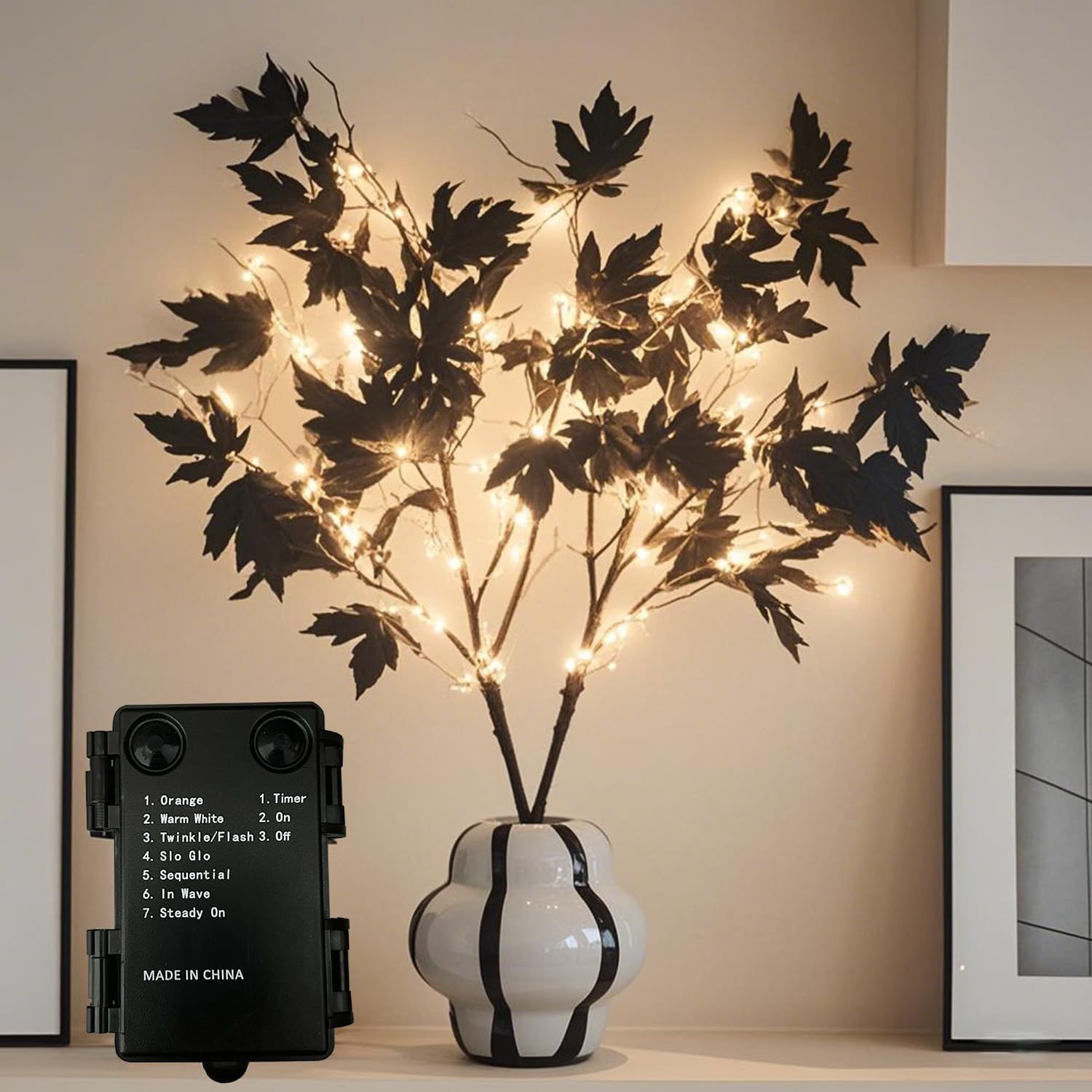 - Exclusive Design: Newly designed for 2024 Halloween, this twig lights is uniquely designed dramatic black and golden maple leaves with 120L bi-color lights for home Halloween decor