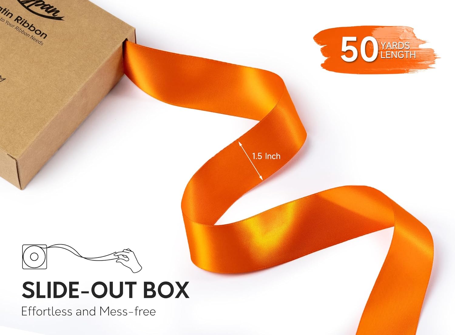 Orange Satin Ribbon 1-1/2 Inch x 50 Yards Double-Faced for Bows Crafts Gift Wrapping Christmas Flower Bouquet Fall Wedding