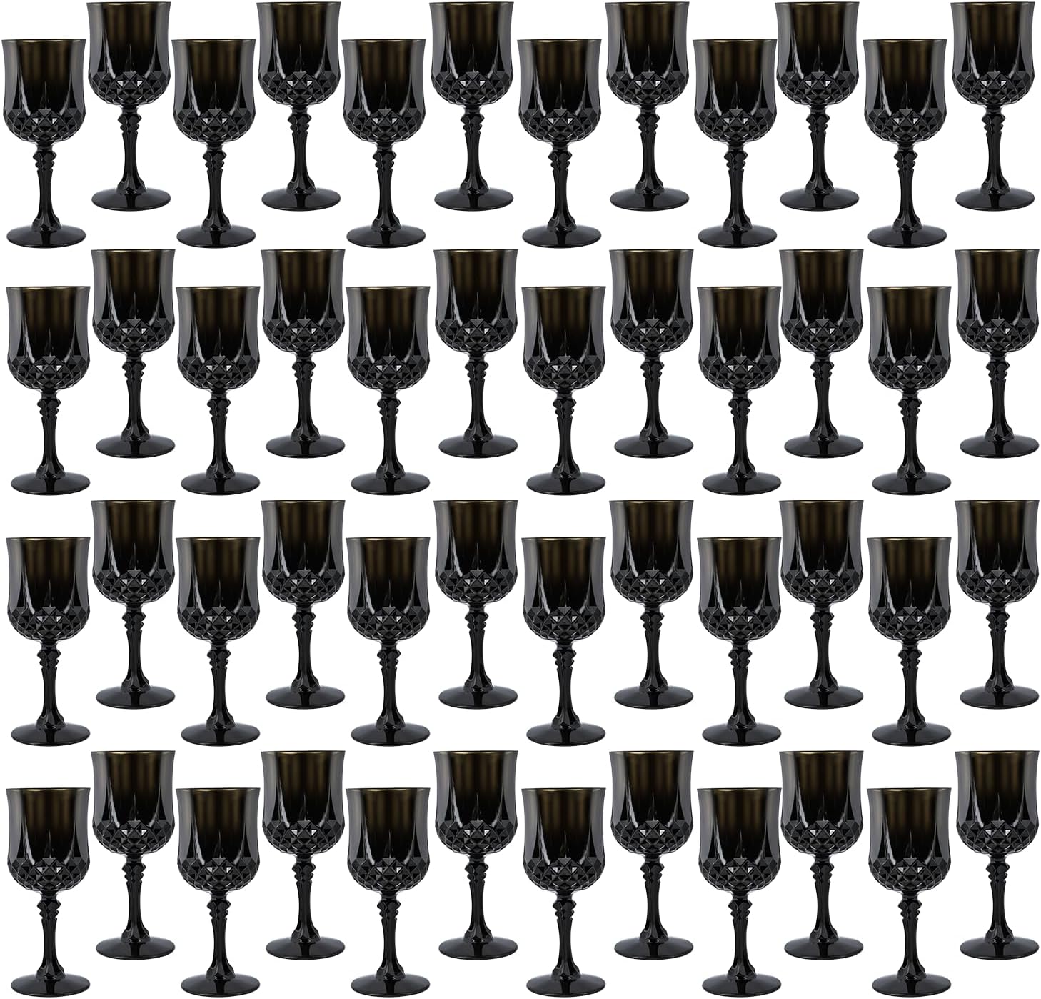 Plastic Wine Glasses,Plastic Goblets Vintage Style Cordial Drinking Glasses for Wedding Reception, Halloween Grand Event Party Supplies (48, Black)
