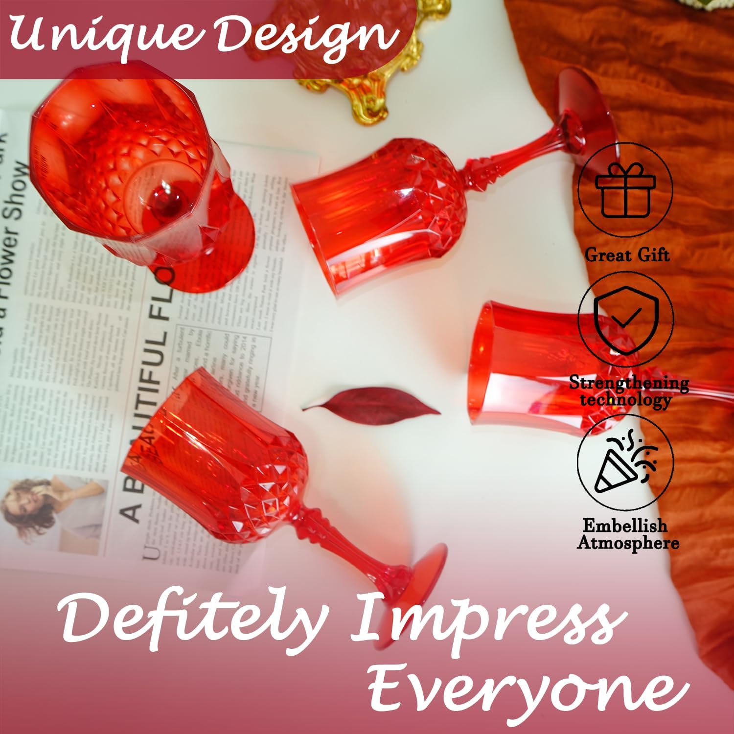- 🍷🍷🍷【Product Description】 This set includes 12 retro-style red party plastic wine glasses, providing ample quantity to meet your daily use and replacement needs. The elegant and sophisticated design makes your wedding reception unique