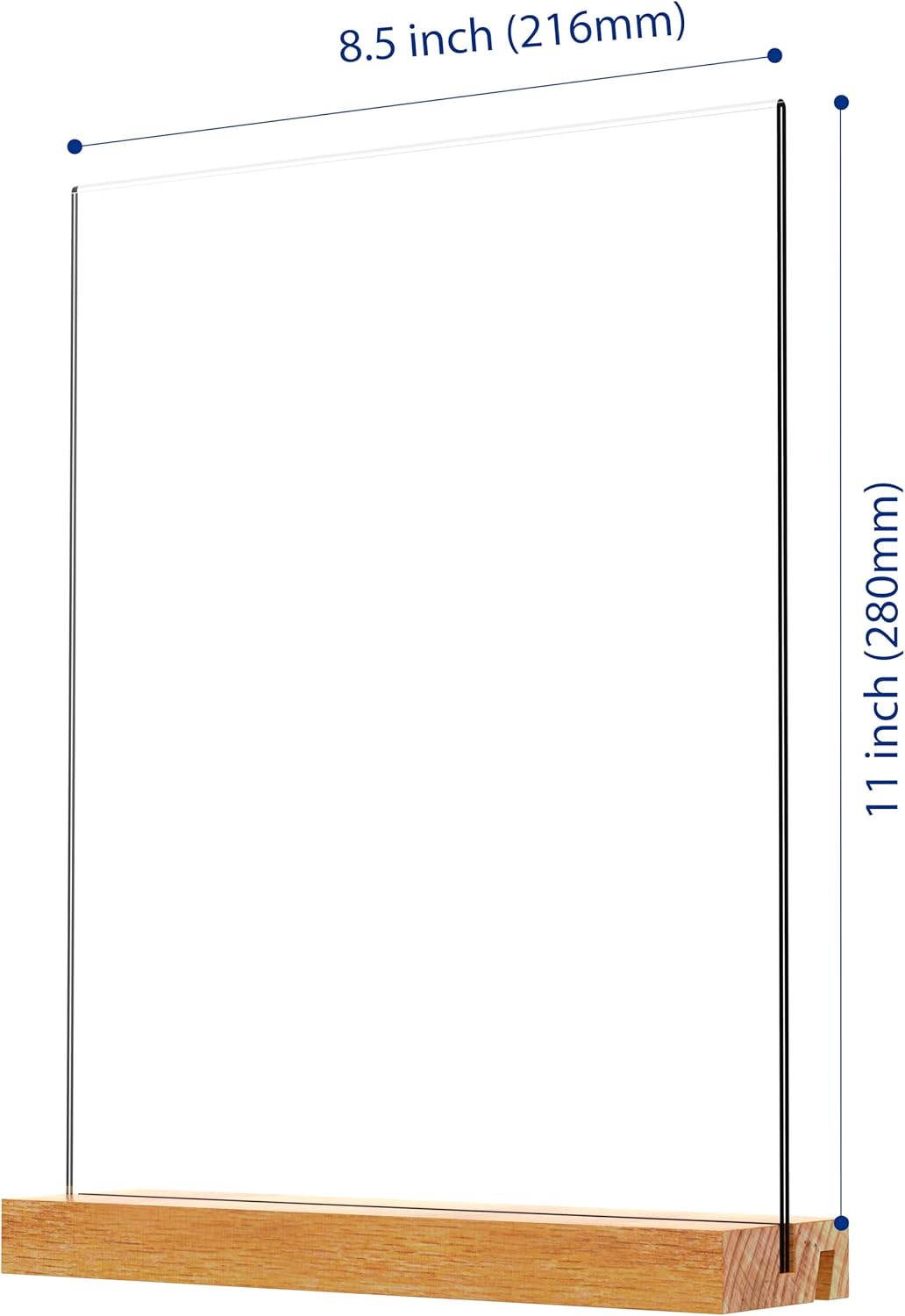Acrylic Sign Holder with Wood Base 8.5x11 Inch Vertical and Slant Displays (5 Pack 8.5*11")