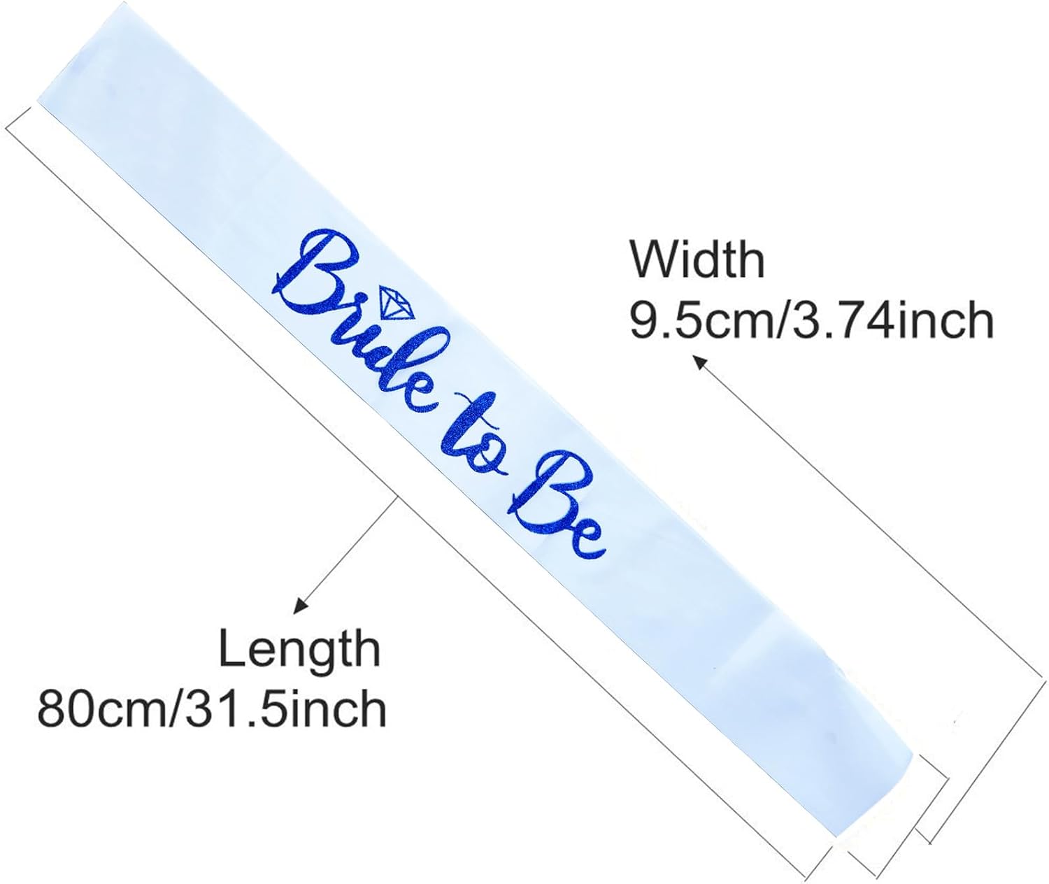 - 【Quality】The white "Bride to be" sashes made of soft ribbon. Unlike other poorly made sashes, the sash does not tear or wrinkle easily. No need to worry about letters peeling off, the blue glitter letters on the sashes make them not only bachelorette party decorations, but also great props for your photos, make you stand out with the bachelorette sashes for bachelorette party.