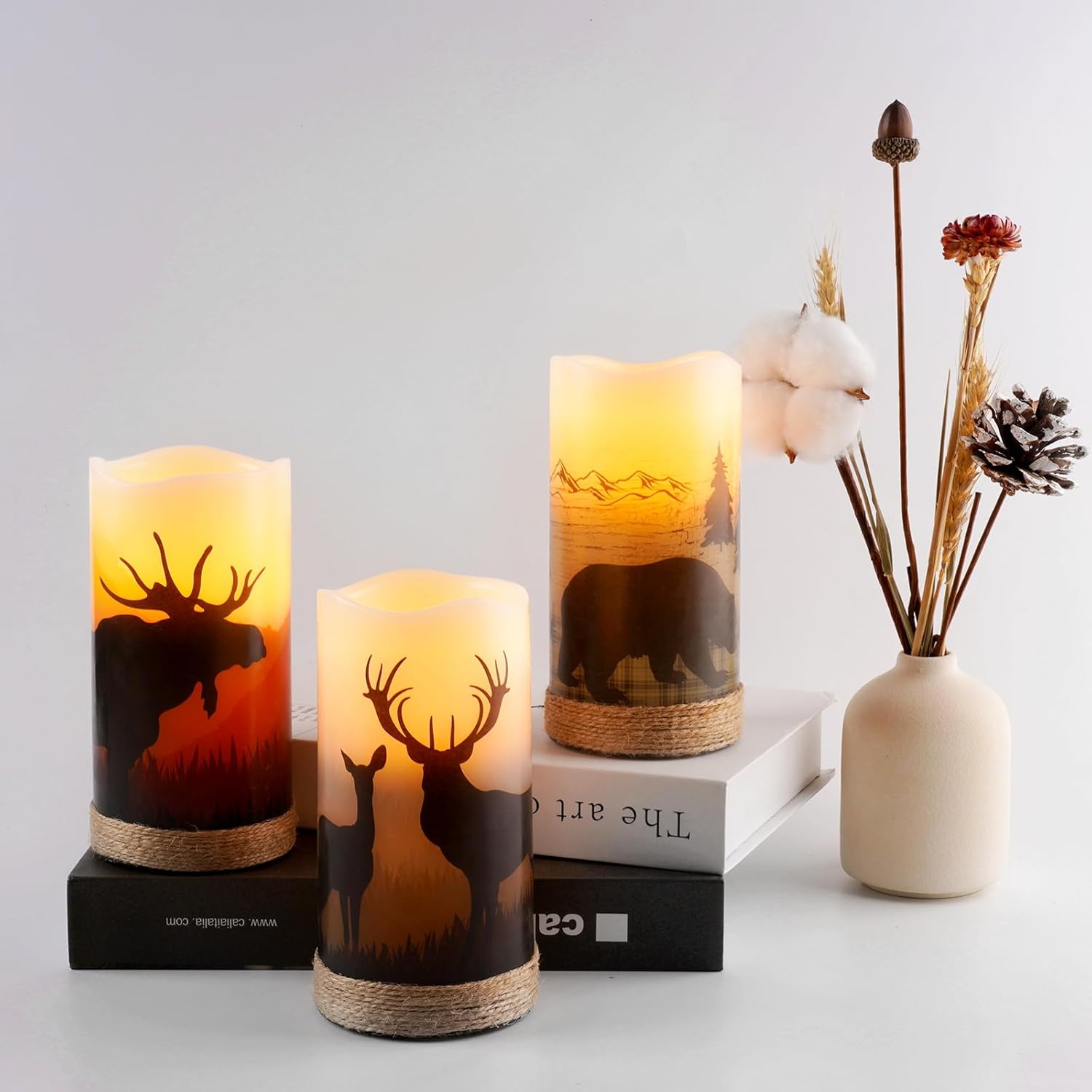 - Candles for Rustic Decor: These Homemory wax flameless candles caters to the needs of the rustic theme, adding deer, bear, moose, and other elements to the battery candles, which is very suitable for farmhouse/country/cabin decoration and special for Christmas.