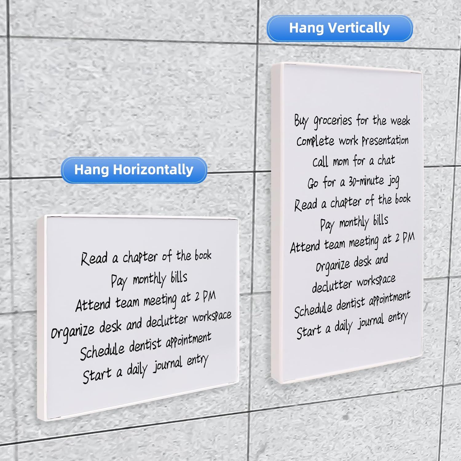 - 【Dual Hanging Options】With two hanging points on the back, choose between vertical or horizontal hanging to suit your space. Effortlessly integrate it into any environment for efficient note-taking or creative expression.