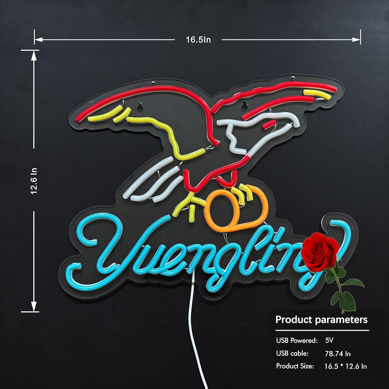 - 1. Cool Design: Eagle Yuenglin Neon Sign size is 16.5* 12.6 Inches. This special neon sign is personalized and can make your life more colorful.